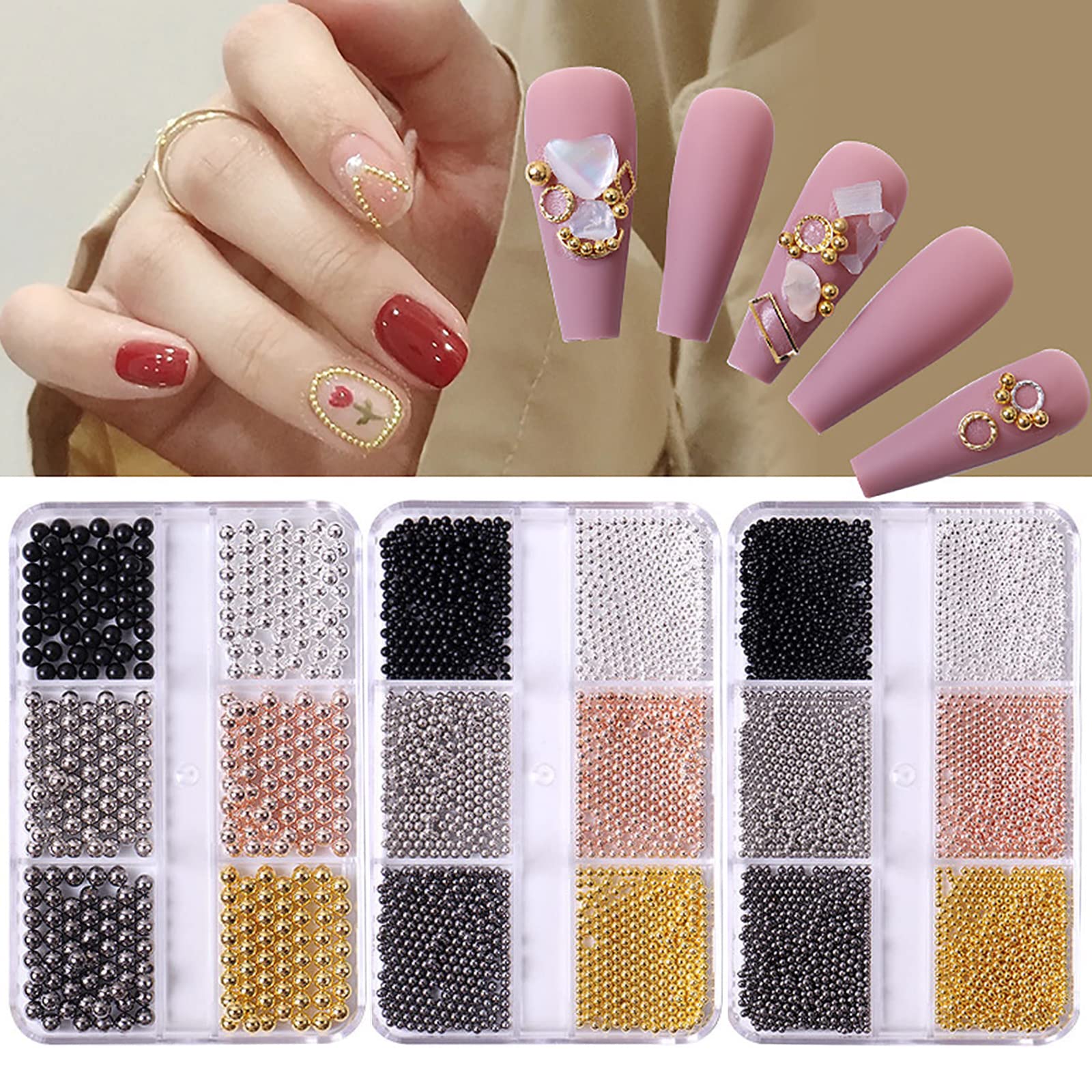 ?6 different colors? Mix after 6 different colors of the caviar pearls in each box, a total of 3 boxes with 3 different sizes, sufficient size and quantity to meet your daily nail design needs.?Easy to use? Clean the surface of your nails, then apply nail glue and place the nail art caviar pearls with glue on the nails.?High quality? Mini single stones made of steel, more durable, can be well decorated nails, make your nail art more charming and more beautiful.?Wild application? Our nail jewelry set is available in 6 popular colors.You can use these pearls for nail sand mini edelstones to decorate nail art, handicrafts, shoes, bags, hats, cell phone covers, clothes, clothes.?Nice gift? You can give it to your sisters, friends and girlfriend, or you can do striking nail art for your friends, you will be so happy. Warnings 1 ?Nice gift? You can give it to your sisters, friends and girlfriend, or you can do striking nail art for your friends, you will be so happy.?Wild application? Our nail jewelry set is available in 6 popular colors.You can use these pearls for nail sand mini edelstones to decorate nail art, handicrafts, shoes, bags, hats, cell phone covers, clothes, clothes.?High quality? Mini single stones made of steel, more durable, can be well decorated nails, make your nail art more charming and more beautiful.?Easy to use? Clean the surface of your nails, then apply nail glue and place the nail art caviar pearls with glue on the nails.?6 different colors? Mix after 6 different colors of the caviar pearls in each box, a total of 3 boxes with 3 different sizes, sufficient size and quantity to meet your daily nail design needs. ?6 verschiedene Farben? Mischen Sie nach 6 verschiedenen Farben der Kaviar-Perlen in jeder Box, insgesamt 3 Boxen mit 3 verschiedenen Größen, ausreichend Größe und Menge, um Ihre täglichen Nageldesign-Bedürfnisse zu erfüllen. ?Einfach zu bedienen?Reinigen Sie die Oberfläche Ihrer Nägel, tragen Sie dann Nagelkleber auf und platzieren Sie die Nagelkunst-Kaviar-Perlen mit Klebstoff auf den Nägeln. ?Hohe Qualität? Mini-Edelsteine aus Stahl, haltbarer, können gut dekorierte Nägel sein, machen Sie Ihre Nagelkunst charmanter und schöner. ?Wilde Anwendung? Unser Nagelschmuck-Set ist in 6 beliebten Farben erhältlich. Sie können diese Perlen für Nagelsand-Mini-Edelsteine verwenden, um Nagelkunst, Kunsthandwerk, Schuhe, Taschen, Hüte, Handyhüllen, Kleider, Kleidung zu dekorieren. ?Schönes Geschenk? Sie können es Ihren Schwestern, Freunden und Freundin schenken, oder Sie können auffällige Nagelkunst für Ihre Freunde machen, sie werden so glücklich sein. WARNHINWEISE 1?Schönes Geschenk? Sie können es Ihren Schwestern, Freunden und Freundin schenken, oder Sie können auffällige Nagelkunst für Ihre Freunde machen, sie werden so glücklich sein. ?Wilde Anwendung? Unser Nagelschmuck-Set ist in 6 beliebten Farben erhältlich. Sie können diese Perlen für Nagelsand-Mini-Edelsteine verwenden, um Nagelkunst, Kunsthandwerk, Schuhe, Taschen, Hüte, Handyhüllen, Kleider, Kleidung zu dekorieren. ?Hohe Qualität? Mini-Edelsteine aus Stahl, haltbarer, können gut dekorierte Nägel sein, machen Sie Ihre Nagelkunst charmanter und schöner. ?Einfach zu bedienen?Reinigen Sie die Oberfläche Ihrer Nägel, tragen Sie dann Nagelkleber auf und platzieren Sie die Nagelkunst-Kaviar-Perlen mit Klebstoff auf den Nägeln. ?6 verschiedene Farben? Mischen Sie nach 6 verschiedenen Farben der Kaviar-Perlen in jeder Box, insgesamt 3 Boxen mit 3 verschiedenen Größen, ausreichend Größe und Menge, um Ihre täglichen Nageldesign-Bedürfnisse zu erfüllen.Mikrokaviar Perlen, 3 Schachteln 3D Nagelkunst Dekorationen, Nagelkunst Perlen Metall Edelsteine Nagelkunst Charms für DIY Nägel Zubehör, Schmuckherstellung (1,5 mm, 2 mm, 3 mm) 1.5mm 2mm 3mm