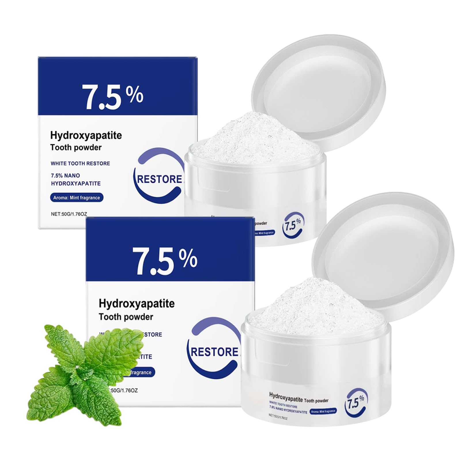 Microcrystalline Hydroxyapatite Powder 7.5% Hydroxyapatite Tooth Powder(2Pcs) ToothpastePowder Deep Cleaning Care TeethPowders