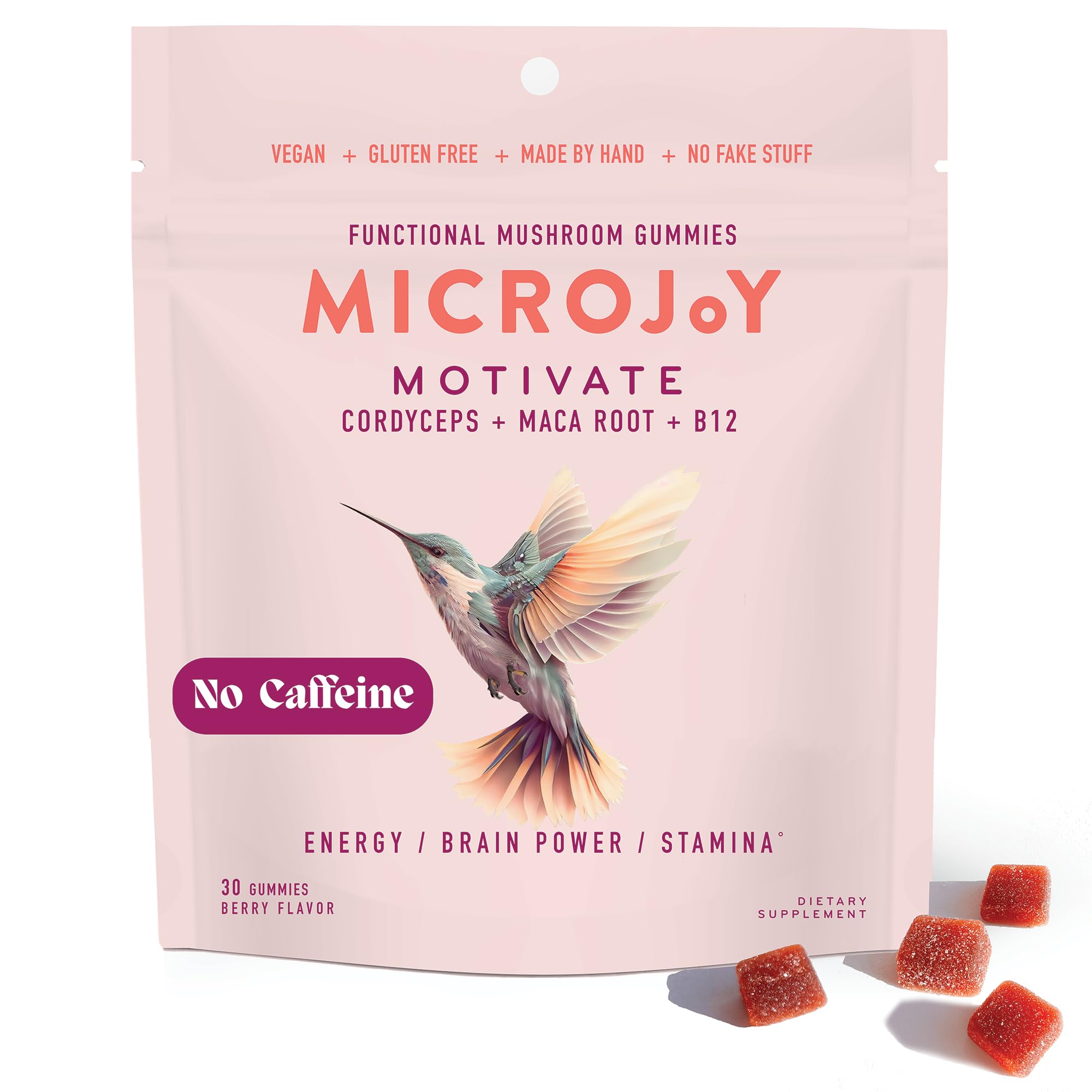 Microjoy Motivate Gummies Energy Stamina & Brain Support with Cordyceps Mushrooms Maca & Vitamin B12 Vegan Gluten-Free Non-GMO Berry Flavor 30 Servings 30 Count (Pack of 1)