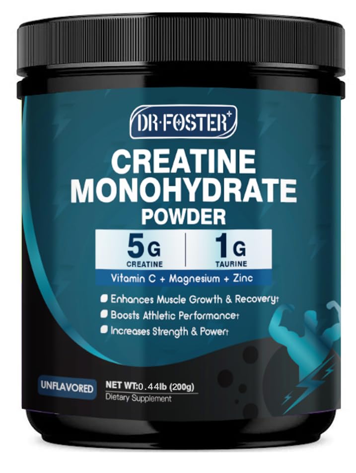 Why Choose Us: Featuring unflavored, fast-dissolving micronized creatine monohydrate that mixes easily in any beverage. Made with pure ingredients and free of gluten, soy, sugar, and additives, it's the perfect supplement for athletes of all kinds. Full Benefits: VC has strong antioxidant properties that reduce muscle breakdown, promote protein synthesis help maintain muscle mass. Furthermore, micronized creatine has been shown to support promote mental clarity maintain long-term brain health. 2X ATP Production Rate: Taurine Aids the rapid absorption of creatine power in your body. This synergy boosts ATP production to increase endurance, maximize your training gains speed up recovery, helping you build lean, "bloat-free" muscle with ease. Double-Effect Muscle Gain:Zinc promotes testosterone production muscle growth, while magnesium maintains muscle tone helps maintain high performance levels. Working together, they aim to maintain peak athletic performance maximize muscle mass gains. Ignite muscle strength: Our formula delivers 6.5g of 99.99 pure Creatine Monohydrate per serving, for a total of 30 servings. This powerful combination of zinc, magnesium, taurine, VC, and creatine help unlock your full strength and physical potential.