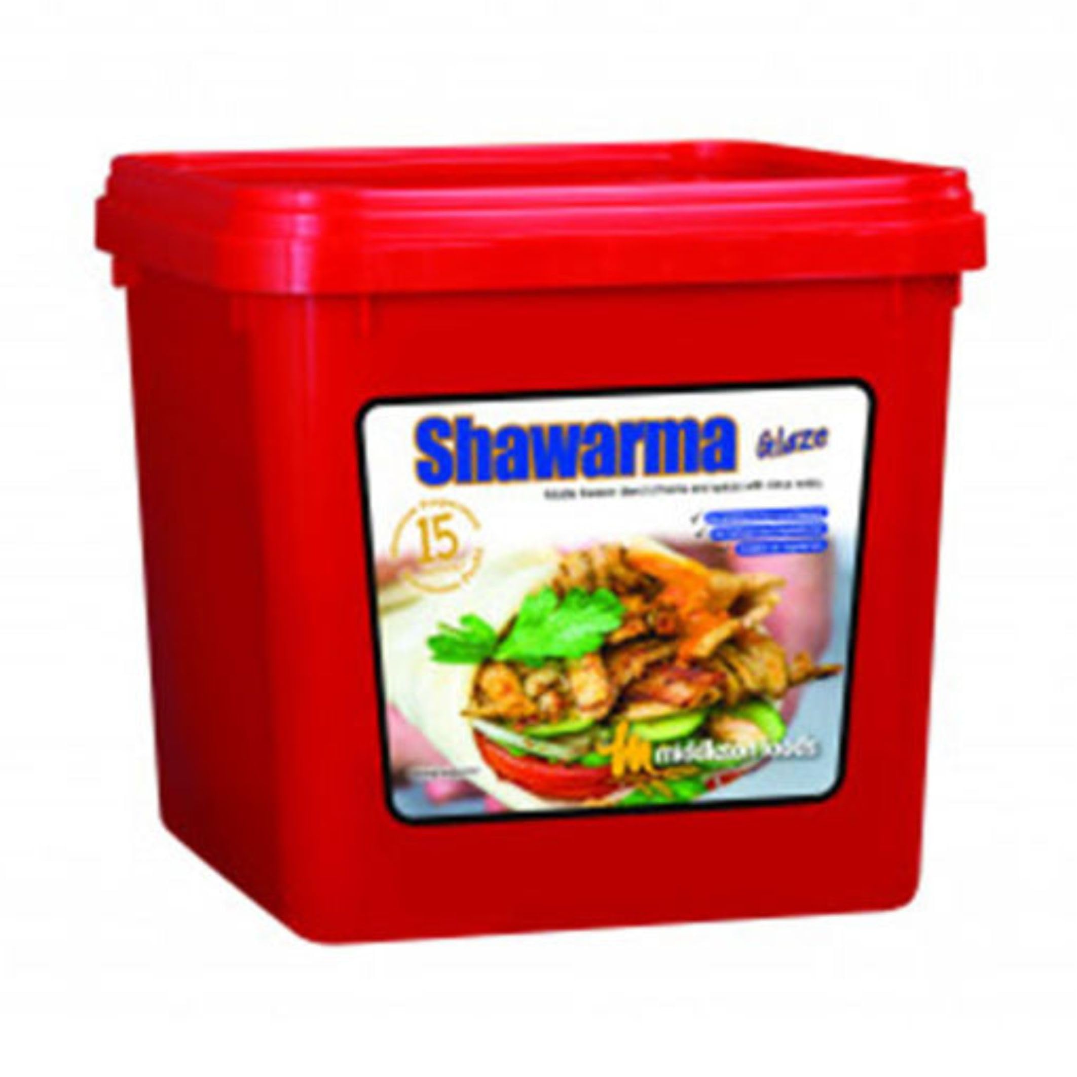 Middleton Foods Shawarma Glaze 2.5kg. Meat Flavouring INGREDIENTS Ingredients Sugar, Dried Glucose Syrup, Maize Starch, Salt, Garlic Granules, Ground Cumin, Smoked Paprika Powder, Ground Coriander, Ground Cinnamon, Ground Black Pepper, Acidity Regulator (Citric Acid), Ground Turmeric, Ground Allspice, Natural Flavourings (Turmeric Extract, Lemon Flavouring, Chilli Flavouring), Chilli Powder, Thickener (Guar Gum), Ground Clove.