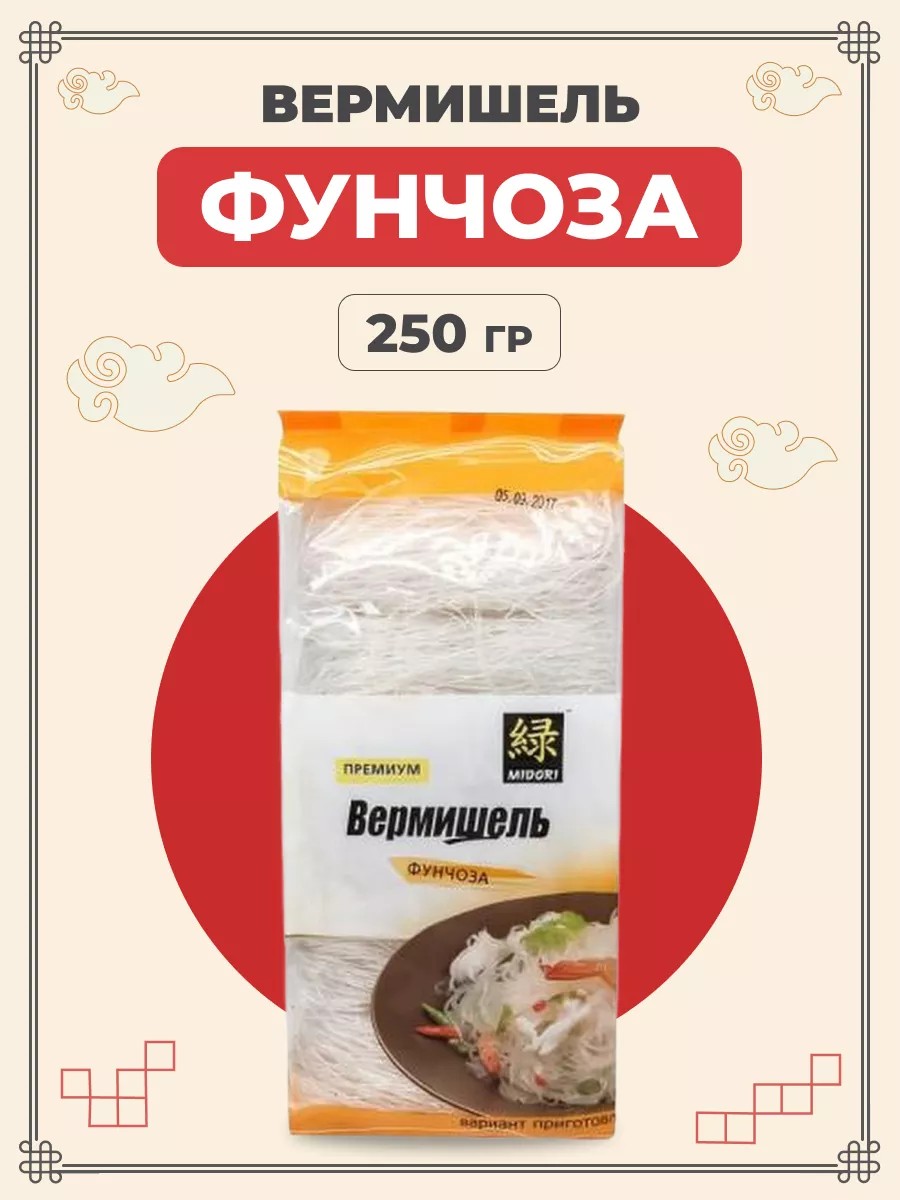 Midori Фунчоза лапша бобовая 250 гр, она же стеклянная, хрустальная, ледяная лапша, представляет собой тонкую вермишель, произведенную из бобовой муки. Бобовая вермишель Фунчоза прекрасно сочетается с овощами и мясом в горячих блюдах и супах, а так же является основой для знаменитого салата по-корейски Фунчоза - это азиатская еда. Создана вермишель бобовая из натуральных ингредиентов: перемолотого в муку гороха, фасоли, кукурузного крахмала и воды. Китайская лапша фунчоза Мидори, при постоянном употреблении, положительно способствует процессам пищеварения, а также нормализации микрофлоры ЖКТ. Большое количество аминокислот содействуют в образовании новых клеток и замедлению процессов старения. Вы можете выбрать комплект из необходимого количества упаковок внутри карточки. Оригинальная Midori лапша китайская Фунчоза исключает наличие в составе некачественных компонентов. Пожалуйста, не стесняйтесь оставлять отзывы! Мы очень внимательно относимся к качеству товаров и обязательно дадим вам обратную связь.