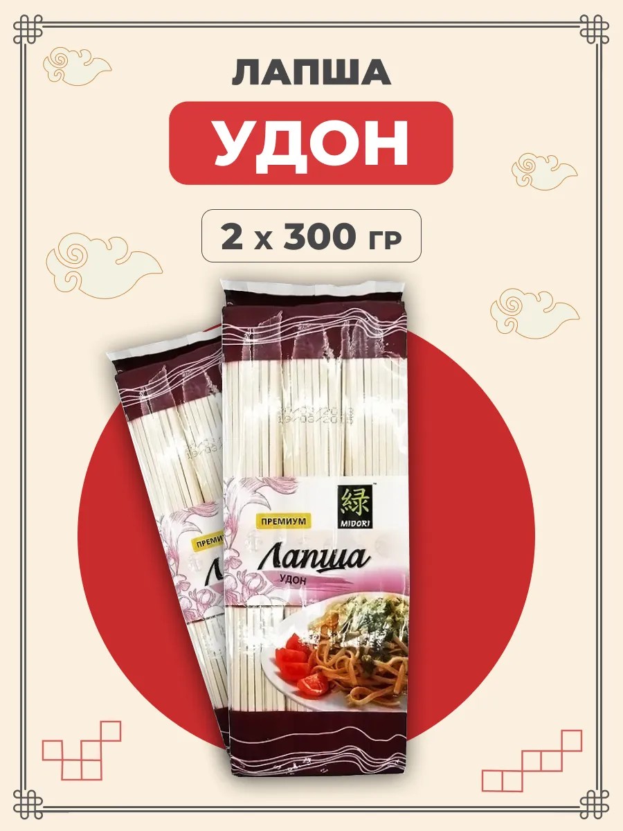 Midori Пшеничная лапша Удон длинная, очень ровная и плоская. Мидори китайская лапша удон для гарнира к блюдам пользуется невероятной популярностью в японской кухне, что подтверждается вторым почетным местом после рисовых блюд. Лапша удон подается отварной, тушеной или пассированной, обычно в горячем виде, как гарнир к овощным и мясным салатам и в разнообразных горячих супах. За счет высокого содержания витаминов группы В в пшеничной лапше Удон, она считается полезной для иммунной, нервной, эндокринной, опорно-двигательной системы, укрепления волос и ногтей. Включайте в свой рацион пшеничную лапшу Мидори! В 1 упаковке 300 гр пшеничной лапши. Комплекты из упаковок: 1 шт, 2 шт, 3 шт, 12 шт, 40 шт. Оригинальная Midori китайская лапша пшеничная Удон исключает наличие в составе некачественных компонентов. Пожалуйста, не стесняйтесь оставлять отзывы! Мы очень внимательно относимся к качеству товаров и обязательно дадим вам обратную связь.
