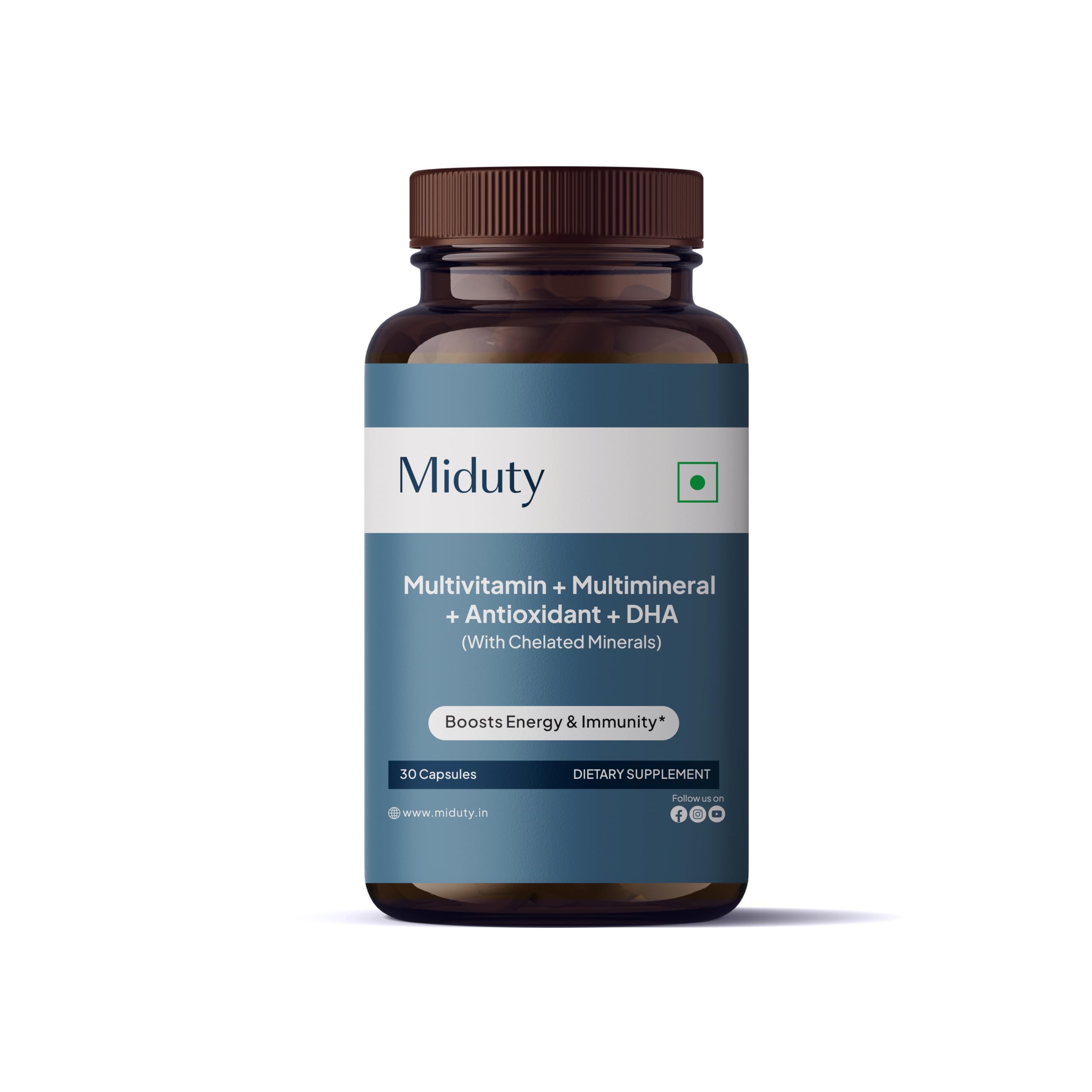 Miduty by Palak Notes Multivitamin - DHA - Alpha Lipoic Acid - Polyohenols - Micro-ingredients Blend - Veg Omega 3 - Multivitamins - Gluten Free - Non-GMO - 30 capsules