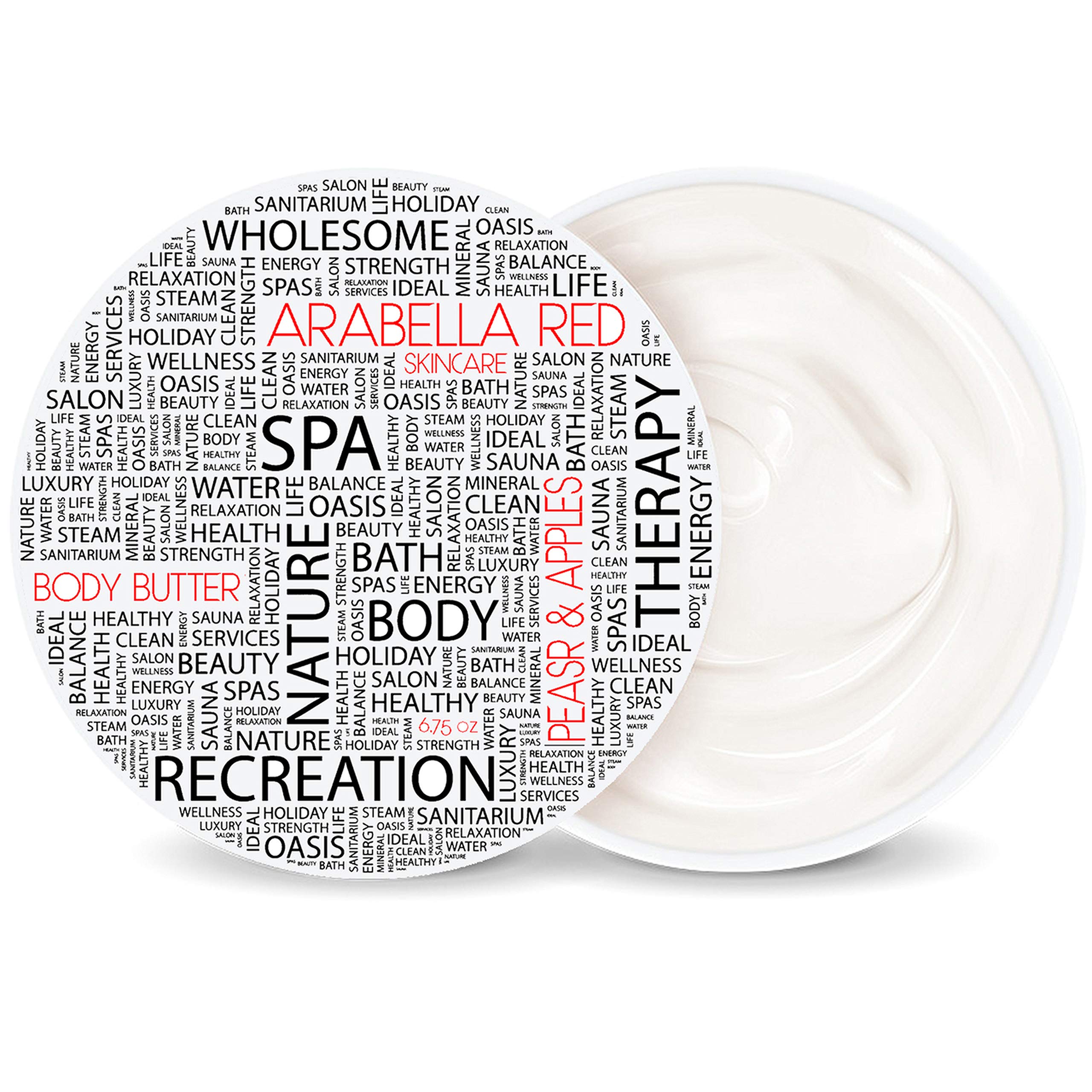 Delight your senses with the fruity and refreshing blend of pears and apples in our luxurious Whipped Body Butter. This rich, all-natural formula is crafted with ultra-moisturizing plant butters and oils to target even the driest skin. Its thick and creamy texture leaves your skin feeling velvety soft, while the invigorating scent of pears and apples provides a rejuvenating experience. Perfect for daily hydration or as a pampering treat for your skin, this body butter promises to envelop you in a cocoon of nourishment, making it an ideal choice for those seeking to indulge their skin while enjoying the delightful fragrance. Directions for Use: Rub a generous amount onto your entire body, focusing on dry areas for intense hydration. For best results, apply after bathing or showering, when skin is slightly damp to lock in moisture, ensuring your skin remains beautifully soft and supple throughout the day. Ingredients: Aqua (Purified water), Glycerin (Vegetable), Theobroma cacao (Cocoa) seed butter, Stearic acid (Vegetable), Beeswax, Caprylic Capric triglyceride (Coconut oil), Butyrospermum parkii (Shea butter), Cetyl esters, Squalane (Olive oil), Moringa oleifera seed oil, Olea europaea (Olive) leaf extract, Lacium barbarum (Goji) powder, Terminalia ferdinandiana (Kakadu plum) fruit extract, Argan Oil, Tocopherol (Vitamin E), Corylus avellana (Hazel) seed oil, Tocopheryl acetate (Vitamin E acetate), Chrysanthellum indicum (Chamomile) extract, Vanilla planifolia fruit extract, Steareth-2, Sodium hydroxide, Stearyl alcohol, Ceteareth-20, Phenoxyethanol, Caprylyl glycol, Potassium sorbate, Hexylene glycol (Paraben-free preservatives), All Natural Fragrance. Size: 6.75 oz Warnings: For external use only. Avoid contact with eyes. Discontinue use if irritation occurs. Keep out of reach of children. Shelf Life: 12 months after opening. Store in a cool, dry place away from direct sunlight. Product Attributes: Free from parabens, sulfates, and harsh chemicals Not tested on animals Recyclable packaging Private Label Option: This product is available in our Private Label-Ready Program. Receive it without labels for custom branding. For orders over 250 units, explore our full Private Label Program here [https: www.midwestseasaltcompany.com private-label ].Recyclable packaging. Not tested on animals. Free from parabens, sulphates and harsh chemicals.