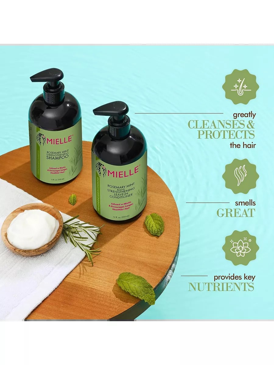 Mielle, Укрепляющий шампунь + кондиционер для роста волос с розмарином и мятой, содержит биотин (355 + 355 мл) MIELLE была создана Моник Родригес, медсестрой, женой и матерью двух девочек, которая хотела разделить свой путь к здоровью волос, используя продукты с органическими ингредиентами для достижения потрясающих результатов. Она знала, как важно знать, что входит в состав ваших продуктов, и хотела создать более здоровые продукты для всей семьи. В результате появился бренд, который поставляет вам натуральные и эффективные продукты.