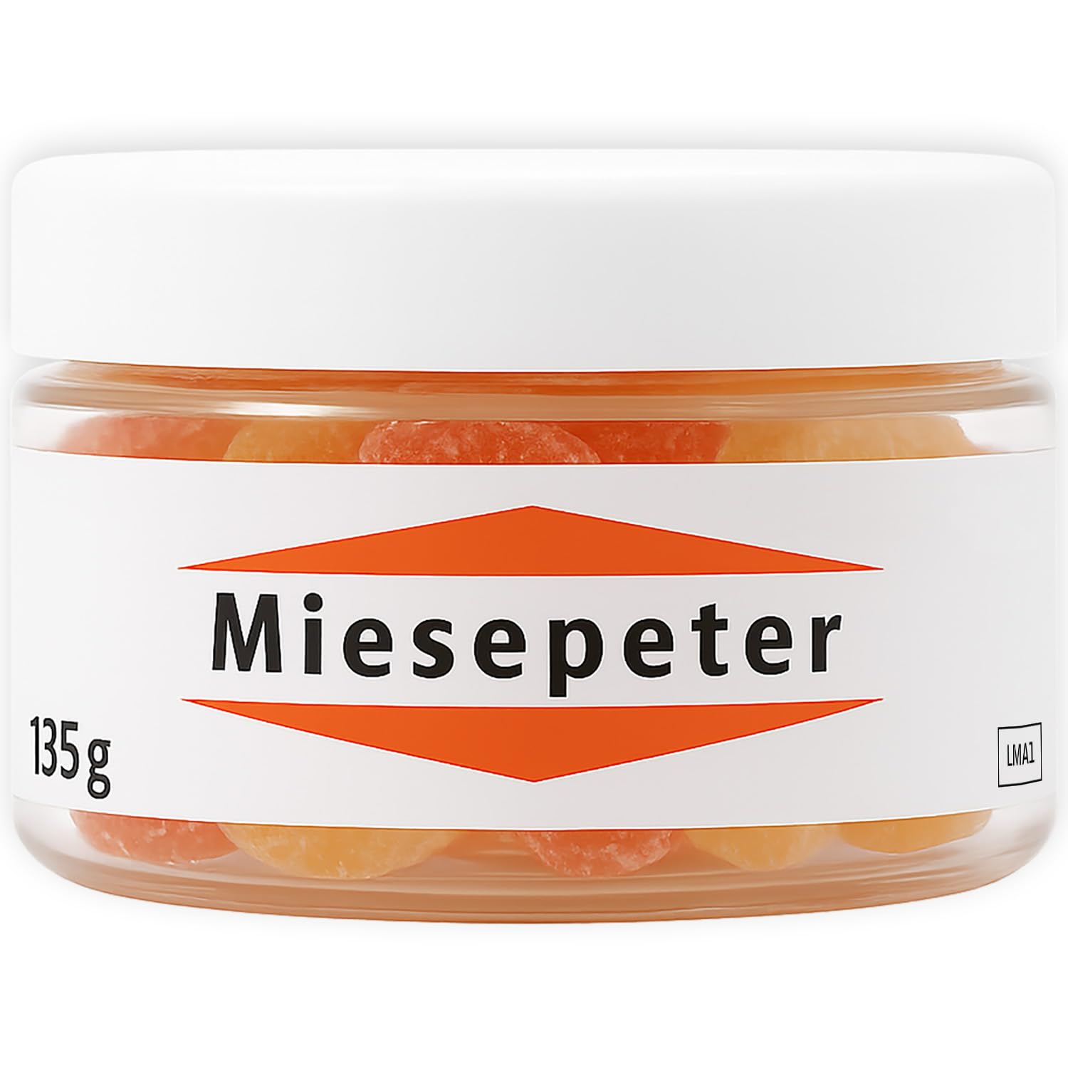 Break the blues and spread cheer with Miesepeter Orange and Lemon Candies! Packaged in a high-quality, round, transparent tin with a white lid, these candies are a fun prank item that will lift your spirits. The tin design is heavily inspired by medicine packaging and adds a touch of humor to the product. The Miesepeter brand logo is prominently printed on the packaging, signifying both quality and humor. These candies with their delicious orange and lemon flavors are not only a tasty treat but also a perfect gift for various occasions. Whether for birthdays, office parties, or simply to make a friend smile, these candies are the solution to a bad mood. With Miesepeter Orange and Lemon Candies, you can chase away the blues and spread cheer. Get this humorous gift today! INGREDIENTS Sugar, glucose syrup, acidifier: citric acid, flavorings, colors: beta-carotene, carmineMiesepeter Bonbons - bonbons amusants contre la mauvaise humeur (orange citron, boîte (135g)) Citrons d'orange Dose (135g)DESCRIPTION DU PRODUIT DESCRIPTION DU PRODUIT Mettez fin à la mauvaise humeur et répandez la bonne humeur avec les bonbons Miesepeter - orange et citron Emballés dans une boîte ronde transparente de haute qualité avec un couvercle blanc, ces bonbons sont un article de farce amusant qui vous mettra de bonne humeur. Le design de la boîte est fortement inspiré des emballages de médicaments et ajoute une touche humoristique au produit. Le logo de la marque Miesepeter est imprimé de manière importante sur l'emballage, ce qui signifie qualité et humour. Ces bonbons aux délicieuses saveurs d'orange et de citron ne sont pas seulement un délicieux friandise, mais aussi un cadeau parfait pour différentes occasions. Que ce soit pour les anniversaires, les fêtes de bureau ou tout simplement pour faire sourire un ami, ces bonbons sont la solution contre la mauvaise humeur. Avec les bonbons Miesepeter - Orange et Citron, vous pouvez chasser la mauvaise humeur et répandre la bonne humeur. Obtenez ce cadeau humoristique dès aujourd'hui. INGRÉDIENTS Sucre, sirop de glucose, acidifiant Acide citrique, Arômes, Colorants: Bêta Carotène, Carmin Véritable