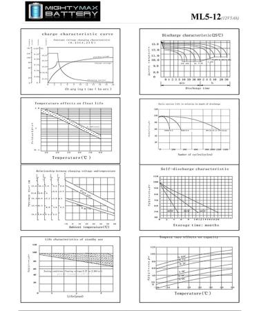Full One Year Warranty. Rechargeable battery that can be mounted in any position, resists shocks and vibration. Long lasting high performance in high and low temperatures. SLA / AGM spill proof battery has a characteristic of high discharge rate, wide operating temperatures and long service life. Dimensions: 3.58 inches x 2.76 inches x 4.21 inches. Terminal: F1. Listing is for the Battery only. No wire harness or mounting accessories included. ML5-12 SLA is a 12V 5AH Sealed Lead Acid (SLA) rechargeable maintenance free battery - UL Certified.