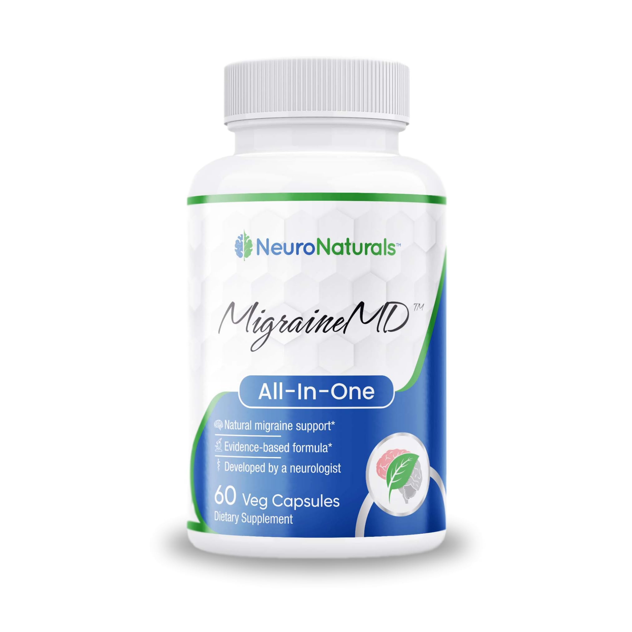 MigraineMD supplement bottle with 60 vegetarian capsules