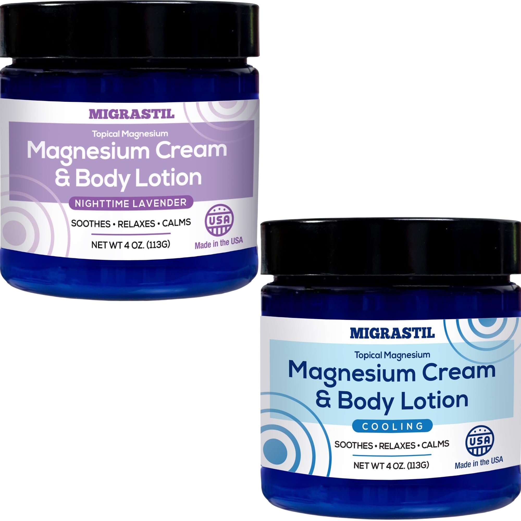 MIGRASTIL Nighttime Lavender Magnesium Cream & Body Lotion and Cooling Magnesium Cream Bundle