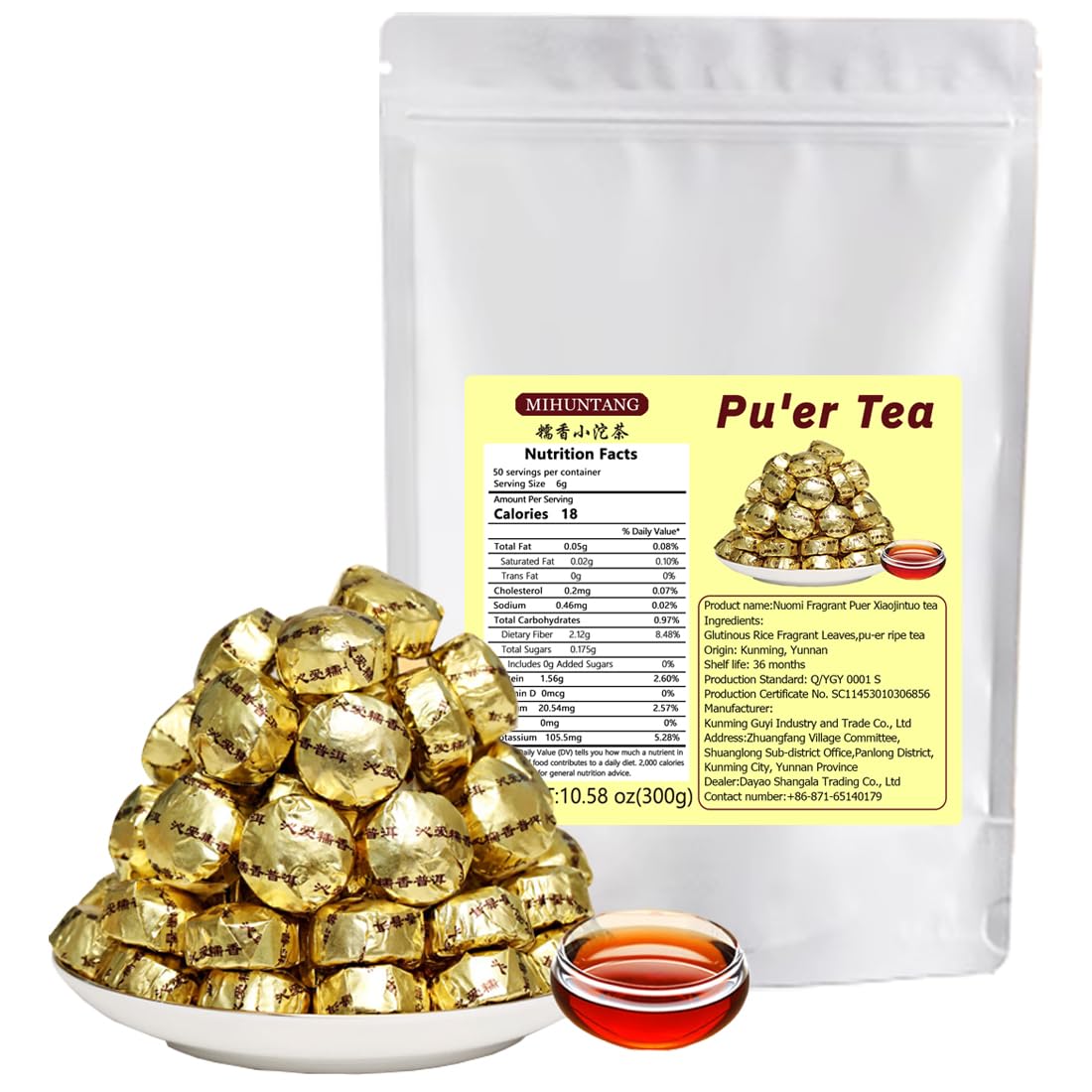 MIHUNTANG Nuo Xiang Pu-erh Ripe Tea 300g Puer Glutinous Rice Scented Cakes Mini Tuo Cha Cakes Scented Sticky Rice Loose Leaves Puerh Tea