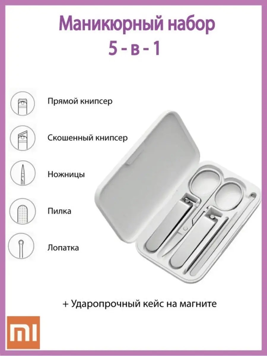 Маникюрный набор миниатюрный и стильный. Набор для маникюра включает два книпсера (прямой и угловой), маникюрные ножницы, пилку для ногтей и толкатель для удаления кутикул. Все аксессуары, включенные в набор, сделаны из высококачественной нержавеющей стали и уложены в ударопрочный ABS кейс, они не затупятся и не теряют режущие свойства на протяжении длительного времени. Набор пригодится в путешествиях с его компактными размерами. Ведь хочется, чтобы процесс ухода за собой был эстетичным и комфортным даже в дороге. Кейс Mijia Nail Clipper Five Piece Set произведен из ABS пластика, который ударопрочен и эластичен.