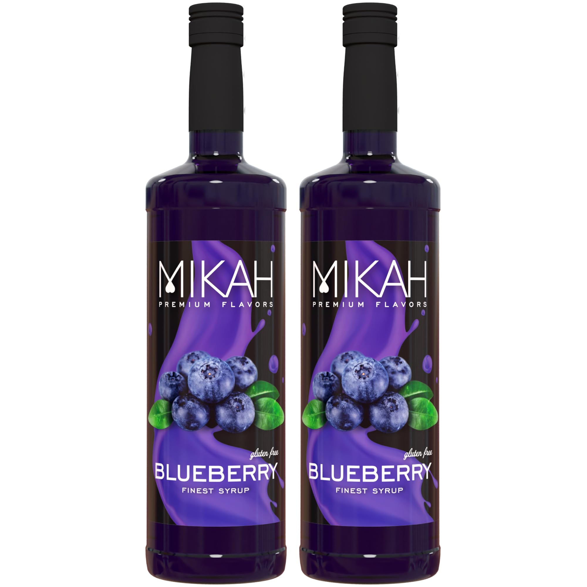 Mikah - Premium Flavors - Blueberry (Blueberry) x2 | Syrup for drinks and desserts | Professional use | 2 bottles of 1 liter (2x1000ml)