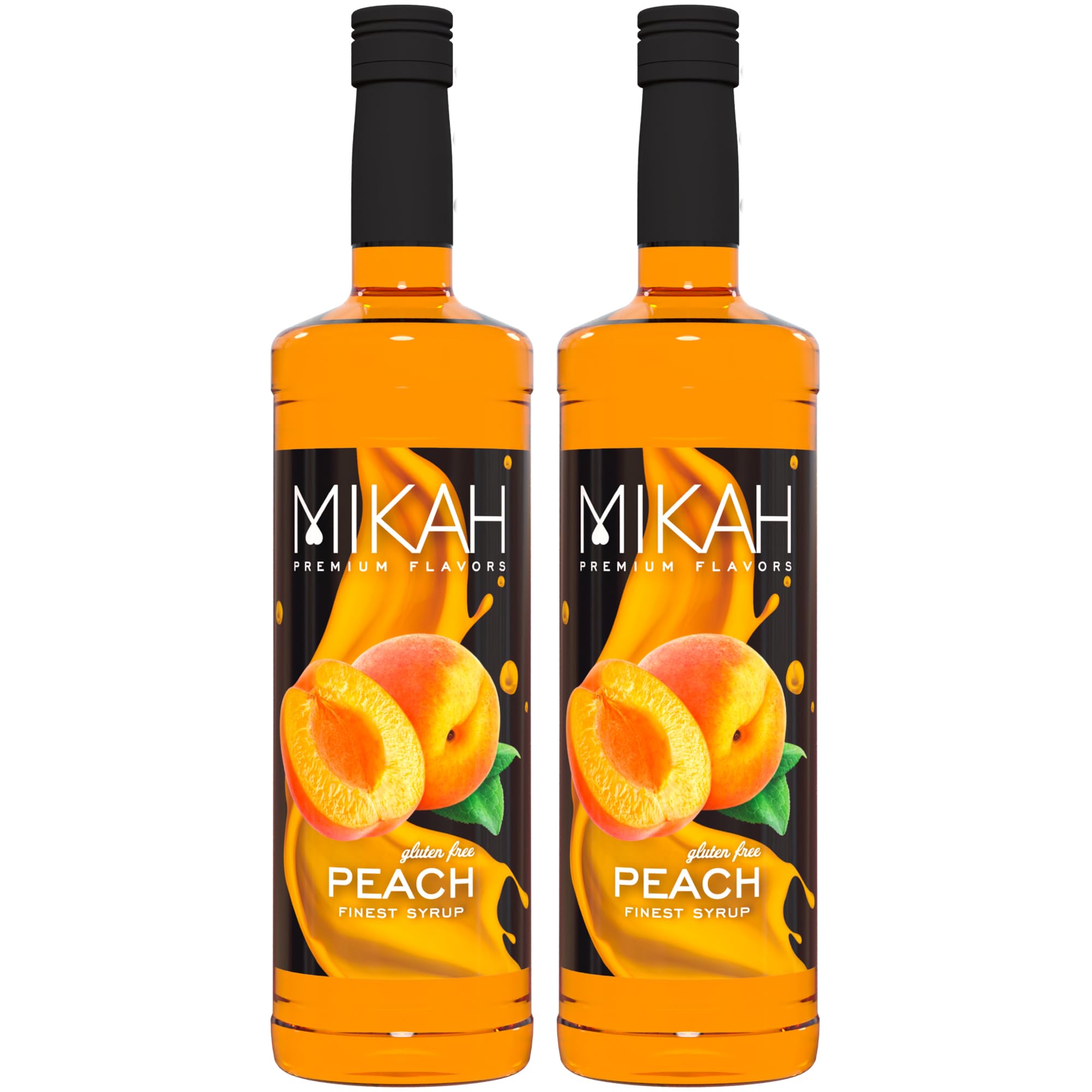 Mikah - Premium Flavors - Peach (Peach) x2 | Syrup for drinks and desserts | Professional use | 2 bottles of 1 liter (2x1000ml)