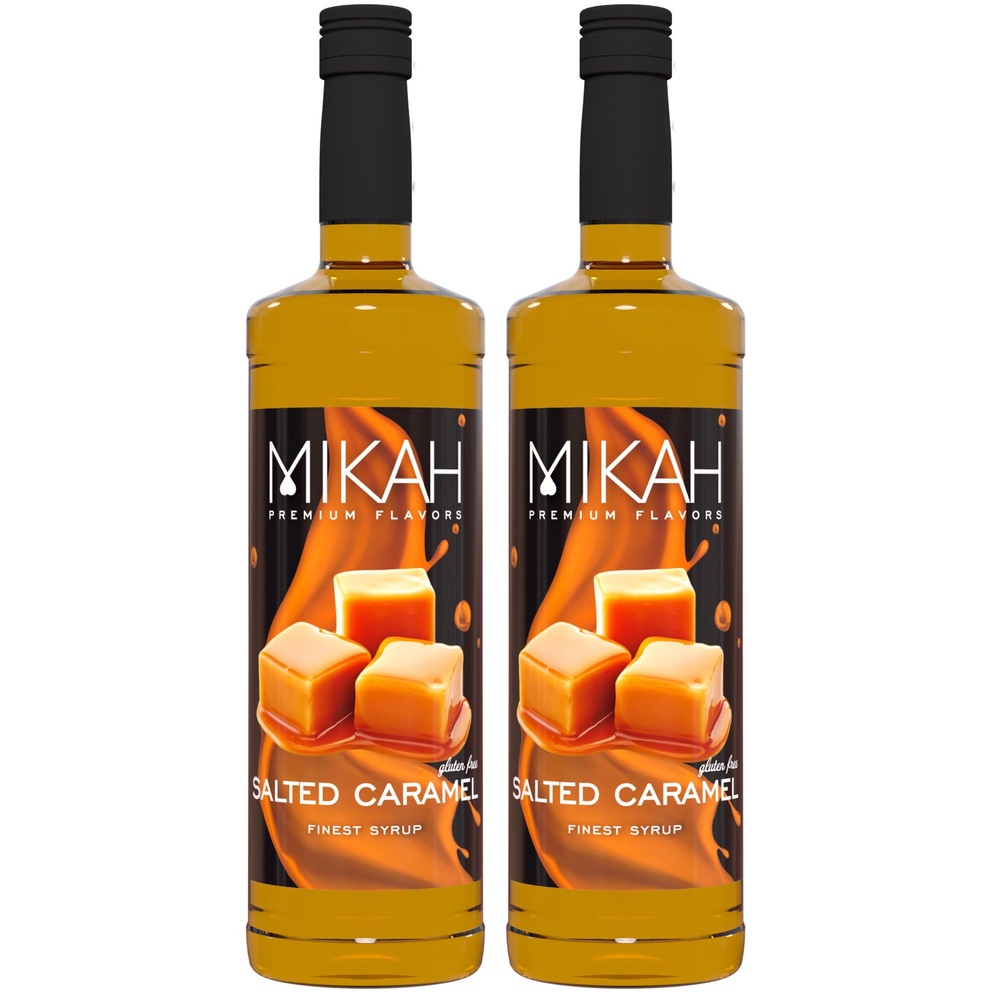 Mikah - Premium Flavors - Salted Caramel (salted caramel) x2 | Syrup for drinks and desserts | Professional use | 2 bottles of 1 liter (2x1000ml)
