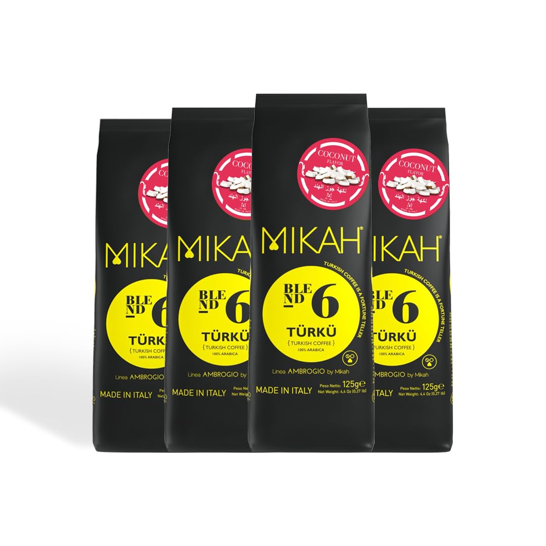 MIKAH Turkish coffee flavored with coconut 100% Arabica coffee blend ground MIKAH according to Turkish tradition 4 bags of 125 g (Turkish coffee flavored with coconut)