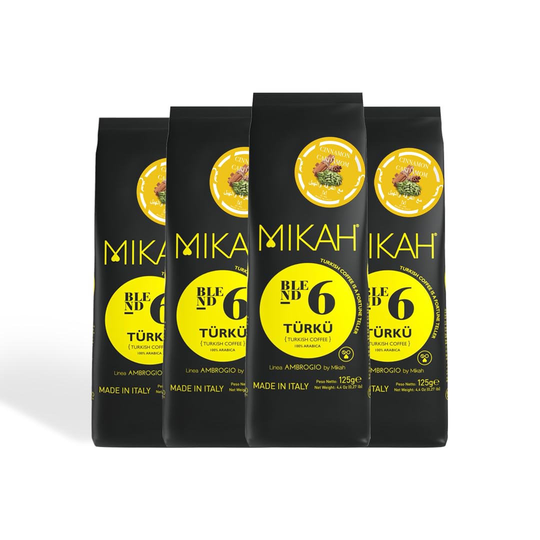 MIKAH Turkish coffee with cinnamon and cardamom 100% Arabica ground coffee blend MIKAH according to Turkish tradition 4 bags of 125 g (Turkish coffee with cardamom)