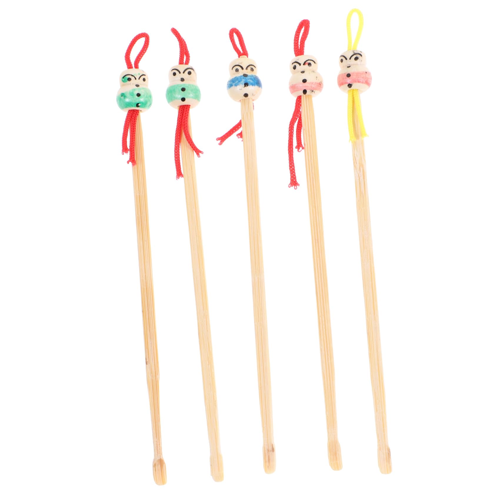 Mikinona 5pcs Ear Cleaners with Cartoon Doll Head Design Skid-Resistant Earwax Removal Tools for Personal and Family Use Wooden Earpicks for Gentle Ear Cleaning Random Color