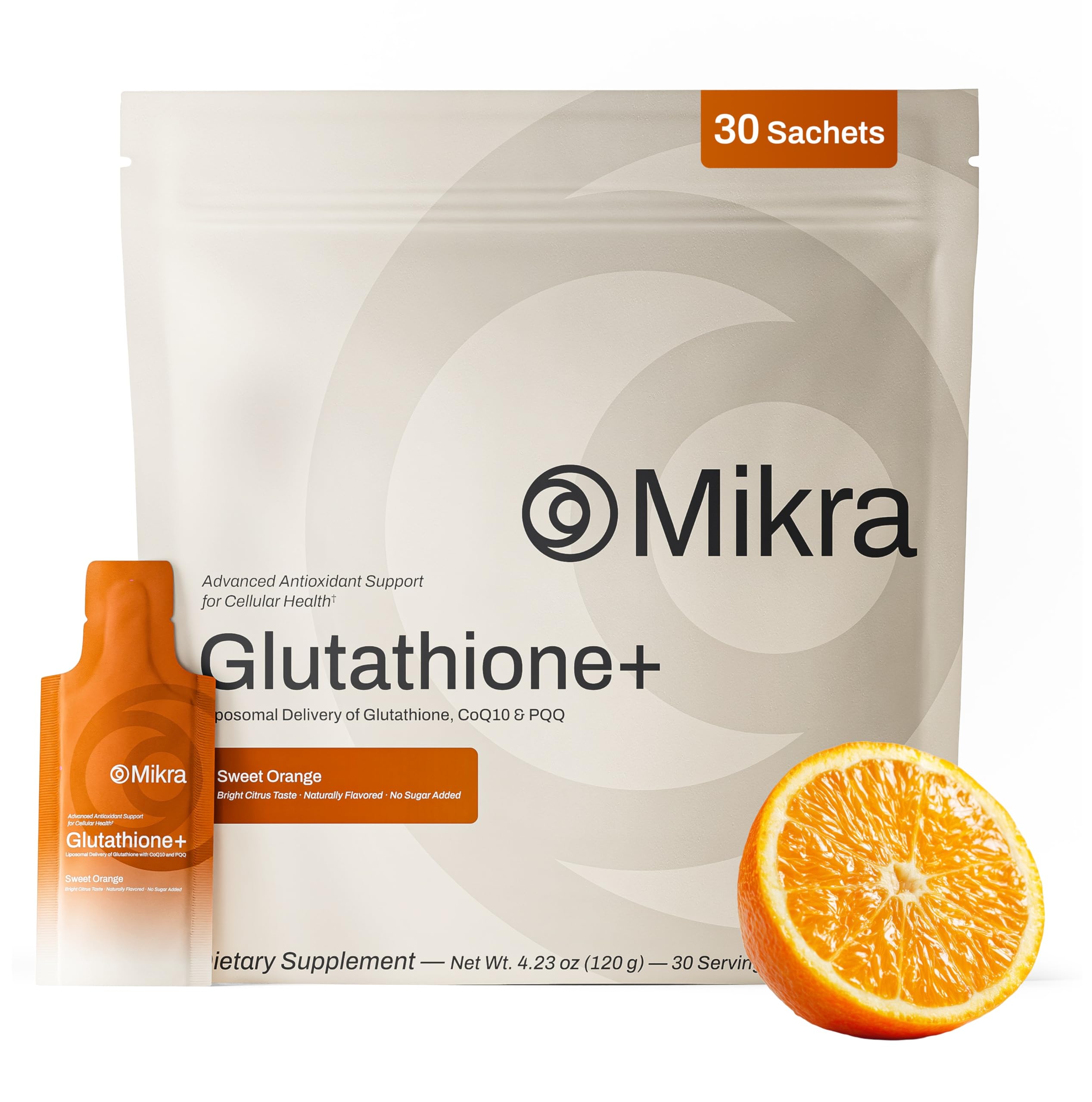 Mikra Glutathione+ Liposomal Antioxidant Supplement with CoQ10 & PQQ - Advanced Cellular Support for Energy Focus & Immune Health Support - Liquid Glutathione Supplement - 30 Single-dose Vials