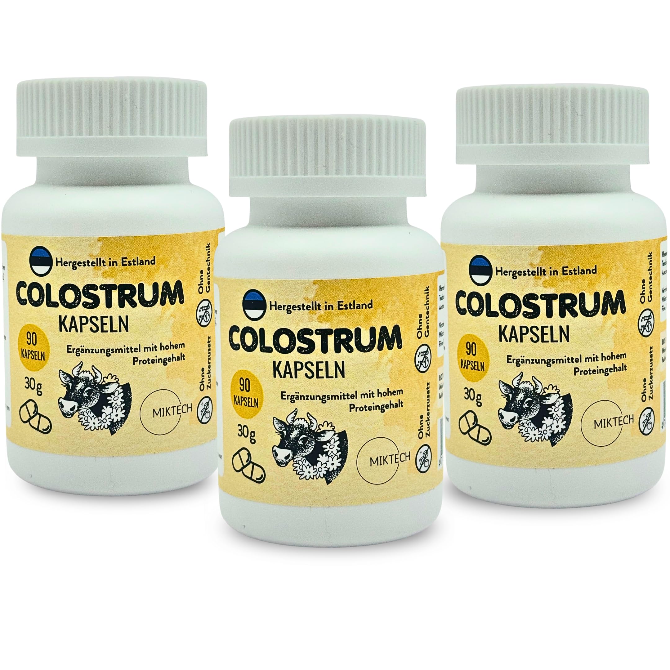 MIKTECH Colostrum - Colostrum Bovin de l'UE - 90 Gélules Naturelles Immunoglobulines (IgG IgA IgM) - Protéines - Lactoferrine (lot de 3)