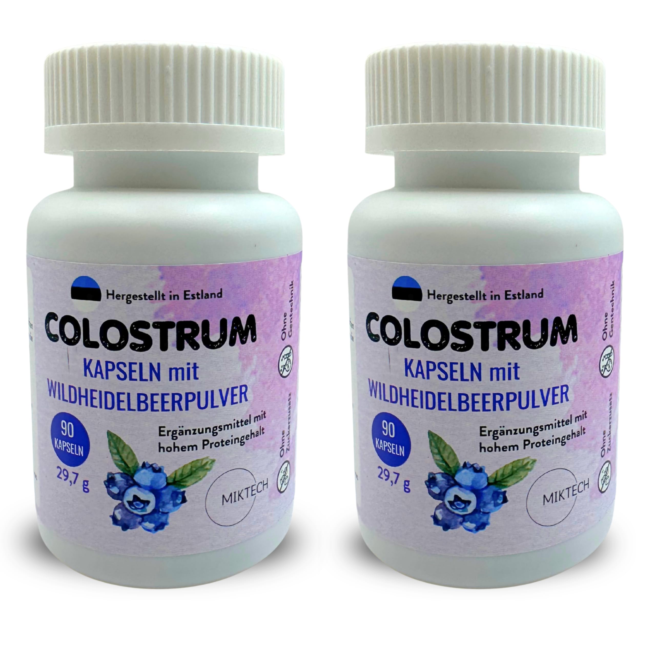 Freeze-dried colostrum is rich in protein, which makes up at least 20 of the product's energy content. It supports muscle growth and contributes to bone maintenance. More than half of the protein consists of immunoglobulins, or antibodies. Other bioactive proteins in cow colostrum include proline-rich peptides, lactoferrin, and growth factors that evolved to strengthen the immune system, promote tissue growth, mucosal development, and more. Blueberries have long been valued as a natural food for their excellent taste and suitability as a dessert. They are rich in tannins, anthocyanins, and other flavonoids, organic acids, and other nutrients. They have been recognized as a popular food for centuries. 100 grams of blueberry powder contains 6 grams of anthocyanins, which may help maintain retinal function and support the health of the stomach and small intestine lining. In a freeze-dried powder blend (50 colostrum and 50 blueberries), the effects combine to further support the health and well-being of you and your loved ones. Store in a dry place at a temperature not exceeding 30 C. Directions for use: 3-10 capsules per day containing 0.3 to 1.0 g of protein and 0.03 to 0.1 g of anthocyanins. Do not exceed the recommended daily dose. Eat a healthy diet do not use this product as a substitute for a varied diet. Keep out of reach of children and store at a temperature not exceeding 30 C. 330 mg per capsule. Ingredients: Freeze-dried bovine colostrum, freeze-dried blueberry powder (Myrtillus fructus), gelatin.The antioxidants in blueberries promote eye health. Quantity: 90 capsules, total content 30 g – Clear application. Convenient dosage: taste-neutral capsules – easy to dose, ideal for home and travel. Natural components: naturally contains immunoglobulins (e.g., IgG IgA IgM) and lactoferrin. Protein source: at least 20 of energy content from protein – suitable for a protein-conscious diet. Origin and quality: pure Estonian beef colostrum – Estonia is known for its clean and natural environment.MIKTECH Colostrum avec Poudre de Myrtille - Colostrum Bovin de l'UE - 90 Gélules Naturelles Immunoglobulines - Source de Protéines - Antioxydants (2)DESCRIPTION DU PRODUIT Le colostrum lyophilisé est riche en protéines qui représentent au moins 20 de la teneur en énergie du produit, favorisent la croissance musculaire et contribuent au maintien des os. Plus de la moitié de la protéine est constituée d'immunoglobulines ou d'anticorps. Les autres protéines bioactives contenues dans le colostrum de vache comprennent les peptides riches en prolines, la lactoferrine et les facteurs de croissance développés de manière évolutive pour renforcer le système immunitaire, favoriser la croissance tissulaire, le développement muqueux, etc. Les myrtilles ont toujours été appréciées comme aliment naturel pour leur excellent goût et leur aptitude à servir de dessert. Les myrtilles sont riches en tanins, anthocyanes et autres flavonoïdes, acides organiques, etc. Ils sont reconnus comme des aliments populaires depuis de nombreux siècles. 100 grammes de poudre de myrtille contiennent 6 grammes d'anthocyanes qui peuvent aider à maintenir les fonctions rétiniennes de l'œil et favoriser le maintien des muqueuses de l'estomac et de l'intestin grêle. Dans un mélange de poudre lyophilisée (colostrum 50 et myrtilles 50 ), les effets se combinent pour soutenir davantage la santé et le bien-être de vous et de vos proches. Conserver dans un endroit sec à une température ne dépassant pas 30 C. Conseils d'utilisation : 3-10 gélules par jour contenant 0,3 à 1,0 g de protéines et 0,03 à 0,1 g d'anthocyanes. Ne pas dépasser la dose journalière recommandée. Mangez sainement, ne l'utilisez pas comme substitut à une alimentation variée. Tenir hors de portée des enfants et conserver à une température ne dépassant pas 30 C. 330 mg par gélule. Ingrédients : lait de colostral de bœuf lyophilisé, poudre de myrtille lyophilisée (Myrtillus fructus), gélatine.Les antioxydants des myrtilles favorisent la santé oculaire. Quantité : 90 gélules, contenu total 30 g – Application claire. Dosage pratique : capsules neutres au goût - Facile à doser, idéal pour la maison et les déplacements. Composants naturels : contient naturellement des immunoglobulines (par exemple IgG IgA IgM) et lactoferrine. Source de protéines : au moins 20 de la teneur en énergie en protéines - Convient à un régime soucieux des protéines. Origine et qualité : colostrum de bœuf pur d'Estonie - L'Estonie est connue pour son environnement propre et naturel.