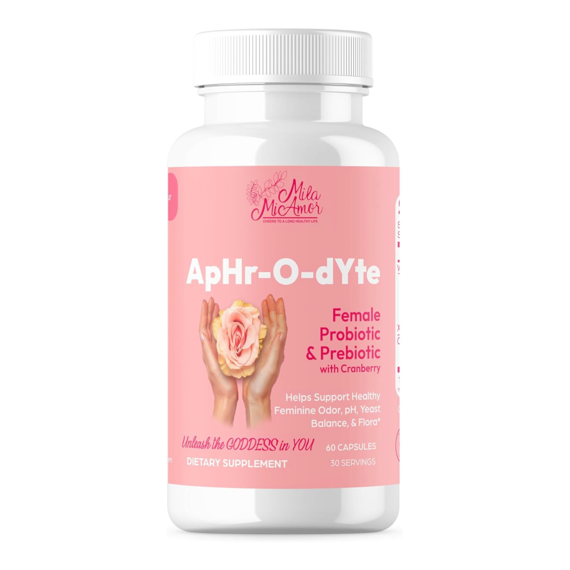 Mila Miamor ApHr-O-dYte Women s Probiotic and Prebiotic with Cranberry - Gluten-Free Non-GMO Supplement for Feminine Health pH Balance Odor Control Urinary Tract - 60 Capsules