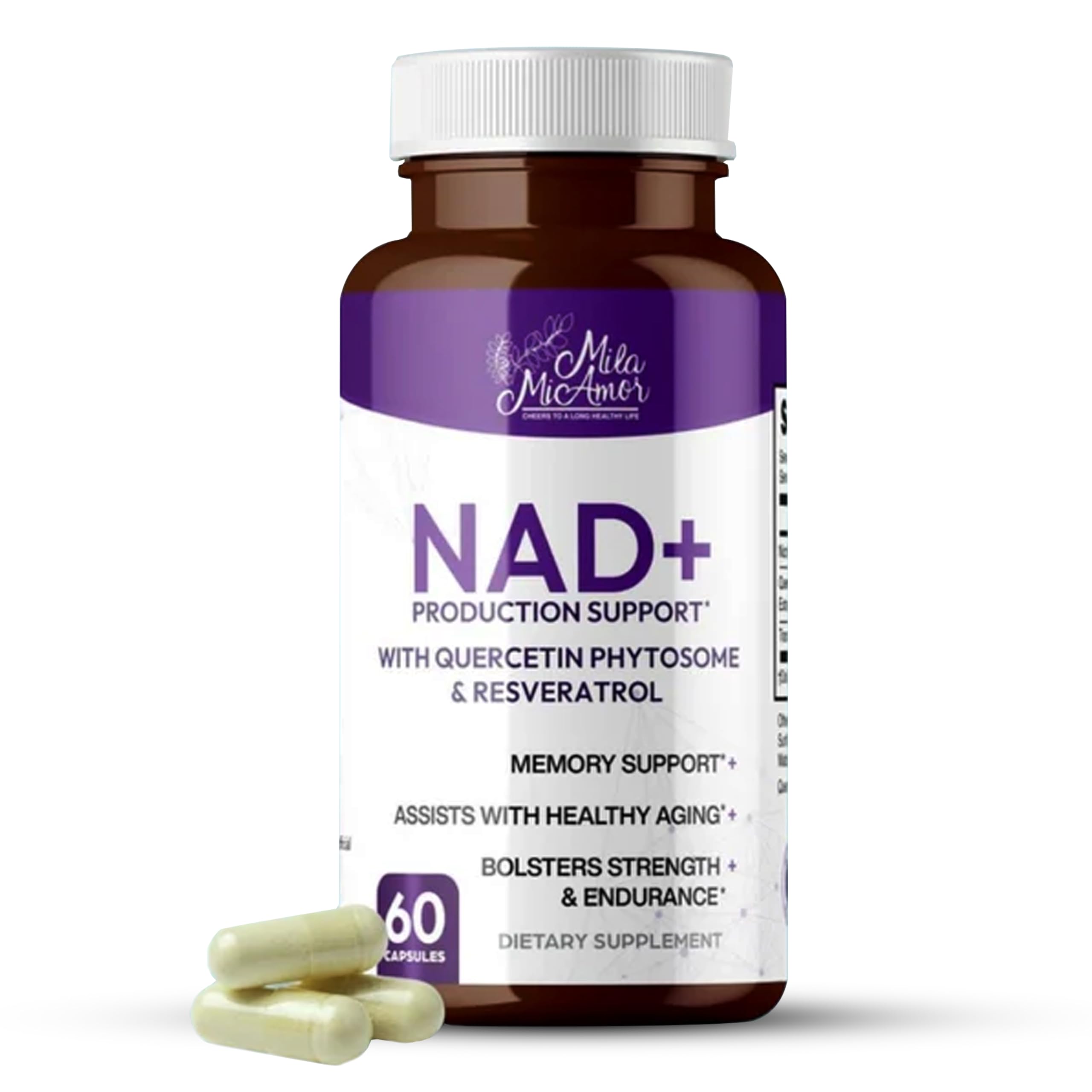 Mila Miamor NAD+ for Cellular Energy & Anti-Aging Supplement| Boost Focus Vitality & Mitochondrial Function | Supports DNA Repair Brain Health & Endurance | Non-GMO Gluten-Free | 60 Capsules