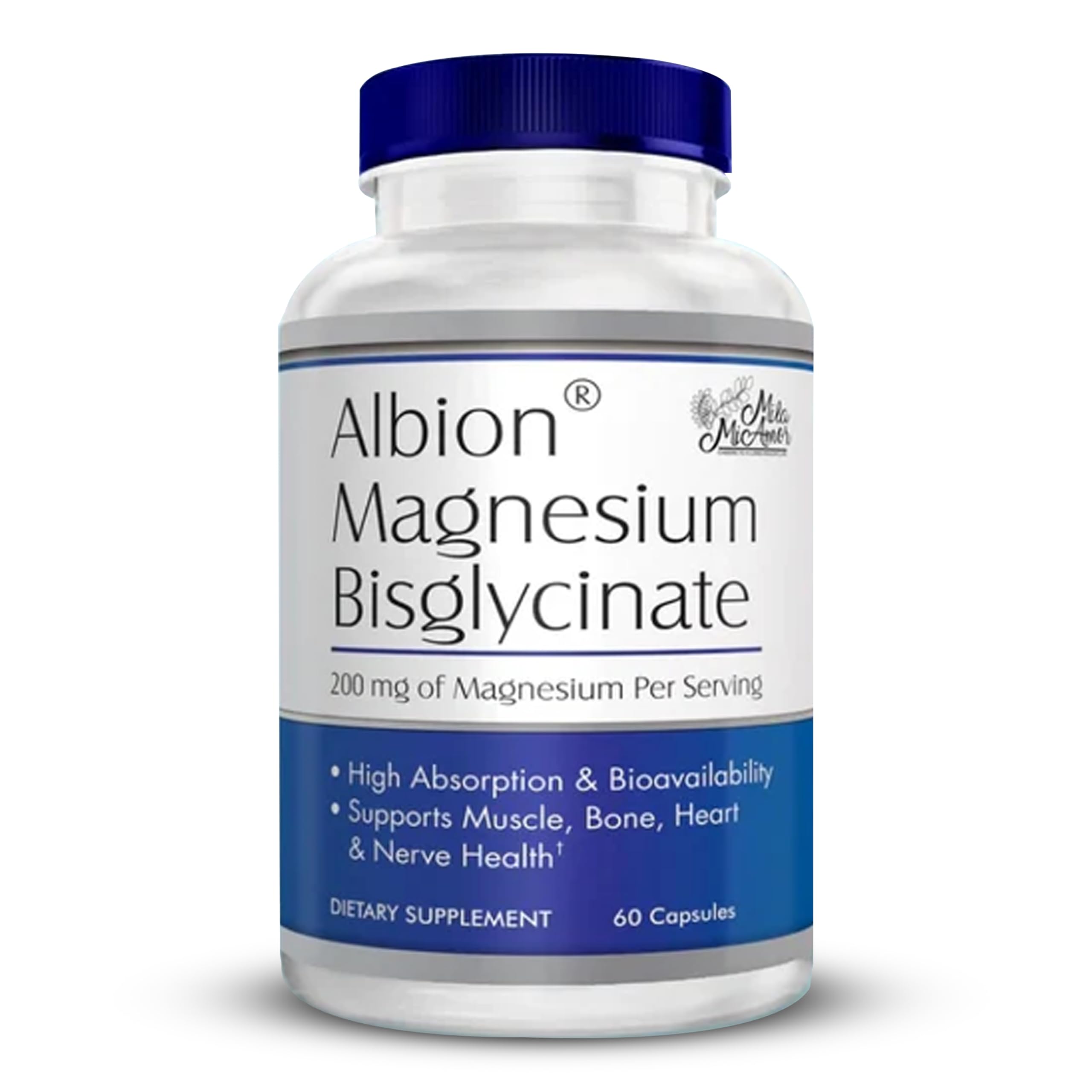 MilaMiAmor Albion Magnesium Bisglycinate Highly Absorbable Chelated Magnesium for Muscle Nerve Relaxation & Sleep Support Gentle on Stomach Vegan 200mg per Serving 60 Capsules