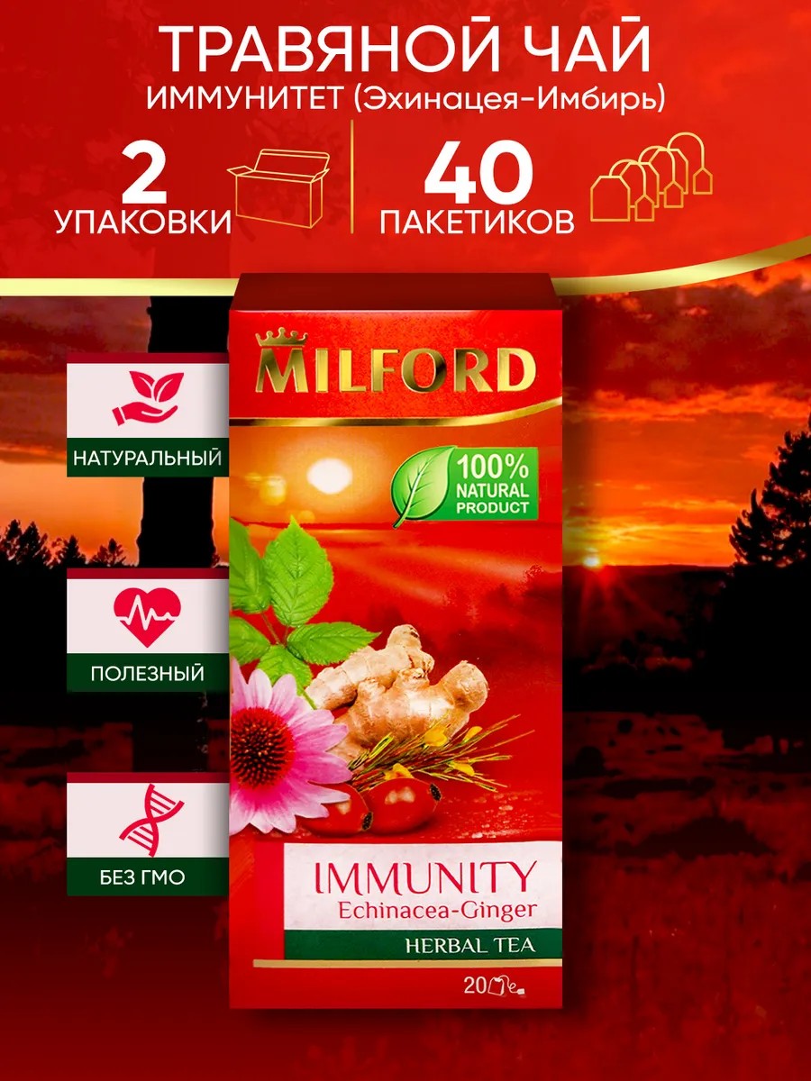 Заварите чашечку чая Милфорд Иммунити и ощутите вкус настоящего травяного чая с эхинацеей и имбирем.
