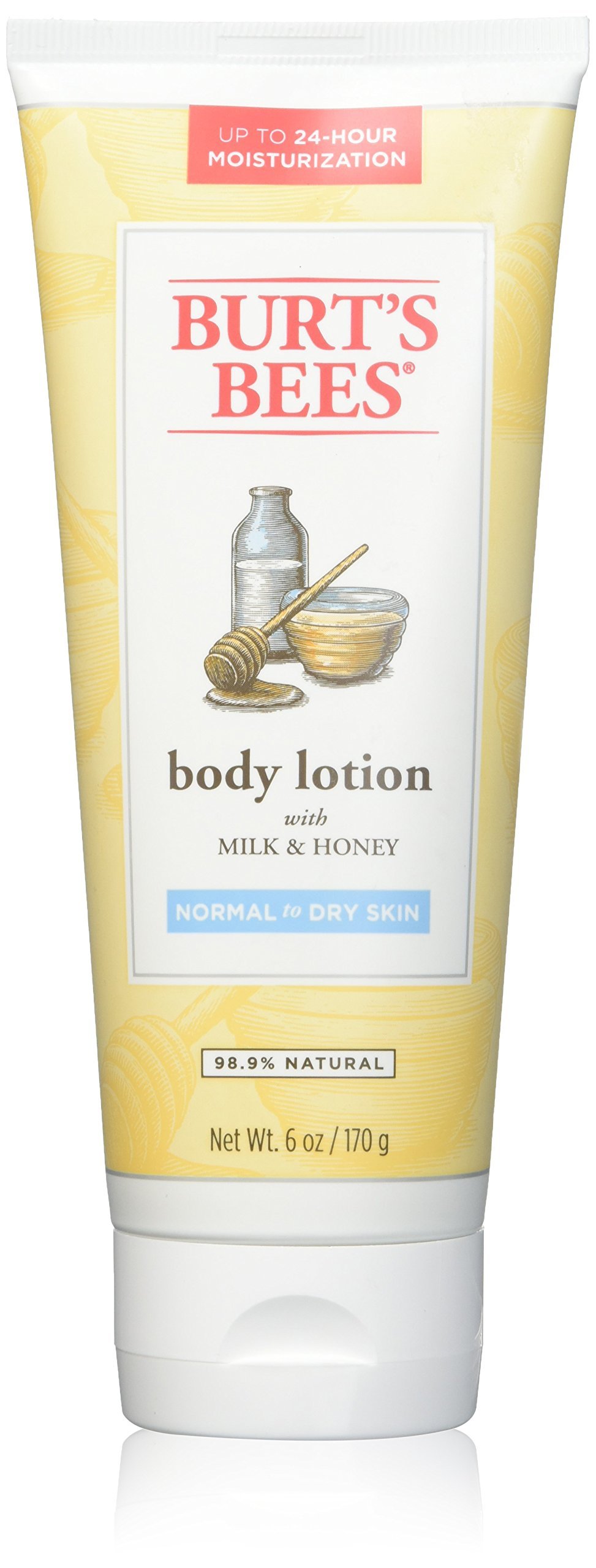Naturally Nourishing Milk Honey Body Lotion 6 oz LotionPamper your skin with the daily nourishment of this softening lotion. Milk and Honey combine with Coconut and Grape Seed Oils for soothing hydration that absorbs quickly, then moisturizes for up to 24 hours. Directions Apply liberally as needed daily. Other Ingredients: Aqua (water,eau), decyl cocoate, glycerin, helianthus annuus (sunflower) seed oil, cera alba (beeswax, cire d'abeille), parfum (fragrance), butyrospermum parkii (shea) butter, cetyl alcohol, glyceryl stearate citrate, polyglyceryl-3 stearate, sine adipe lac (nonfat dry milk, poudre de lait ecreme), mel (honey, miel), aloe barbadensis leaf juice, rosmarinus officinalis (rosemary) leaf extract, cocos nucifera (coconut) oil, olea europa (olive) fruit oil, vitis vinifera (grape) seed oil, tocopherol, beta-carotene, lactic acid, xanthan gum, sucrose stearate, sodium stearoyl lactylate, magnesium aluminum silicate, citric acid, phenoxyethanol, sodium benzoate, glycine soja (soybean) oil, canola oil (huile de colza). Warnings: Keep out of reach of children. As with all dietary supplements, consult your healthcare professional before use. See product label for more information. BRAND STORY By Burt's Bees