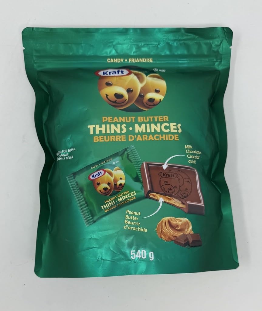 Indulge in the perfect balance of creamy peanut butter and smooth milk chocolate with Milk Chocolate Peanut Butter Thins. Crafted for those who appreciate the finer things in life, these delectable thins offer a luxurious snacking experience. Each bite delivers a satisfying crunch, followed by the rich, comforting taste of Kraft's signature peanut butter, enveloped in a velvety layer of milk chocolate. Perfect for sharing, gifting, or simply treating yourself, Milk Chocolate Peanut Butter Thins are the ultimate snack for any occasion.Trusted Brand: Brought to you by Kraft, a name synonymous with quality and taste in households for generations. Convenient Packaging: Comes in a 540g pack, perfect for sharing with friends and family or enjoying over time. Versatile Snacking: Ideal for any occasion—whether it's a midday snack, a sweet treat after dinner, or a special addition to your dessert table. Irresistibly Delicious: A harmonious blend of creamy peanut butter and rich milk chocolate, creating a truly indulgent treat. Perfectly Thin: Each piece is crafted to be thin and crisp, offering a delightful crunch with every bite. Premium Quality: Made with high-quality ingredients, including Kraft's signature peanut butter and smooth milk chocolate.