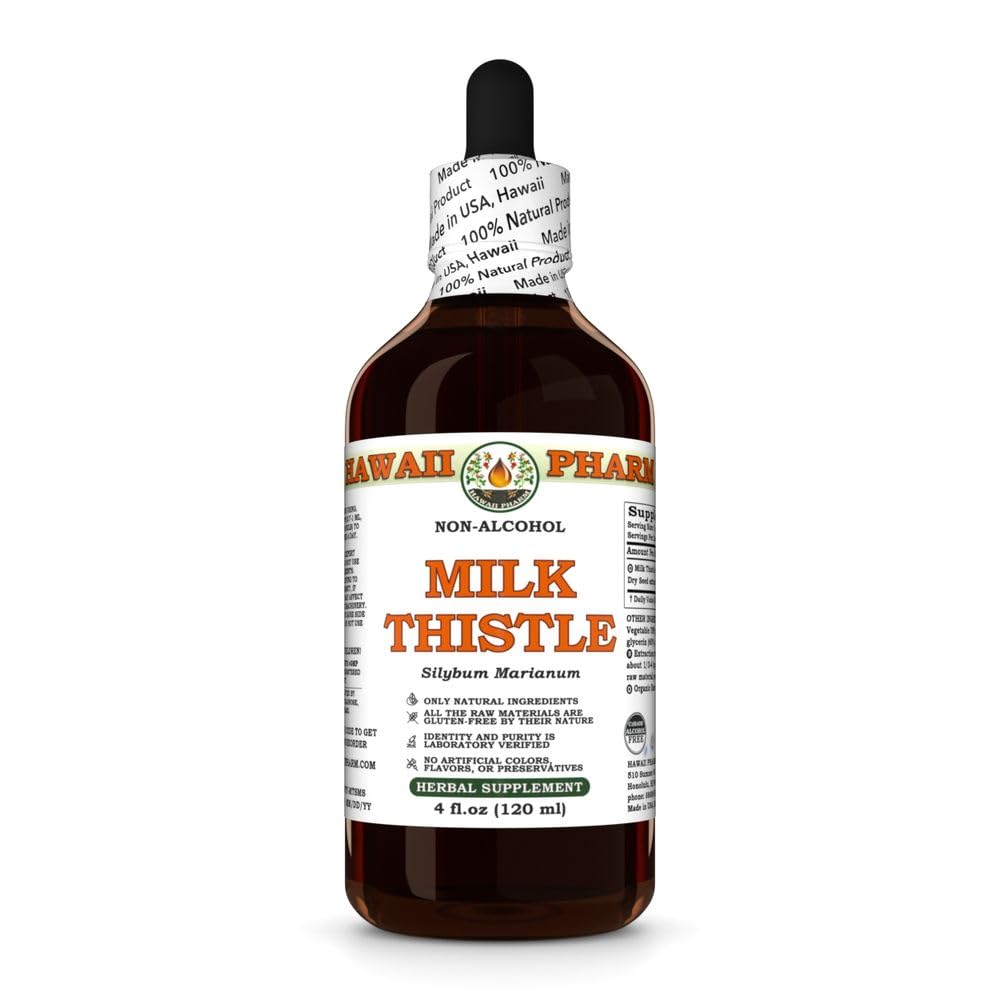 Made in the USA with Superior Quality: Proudly crafted in the USA (Hawaii), our Milk Thistle Extract uses select, high-quality ingredients sourced from trusted suppliers. Each batch undergoes rigorous laboratory testing to ensure it meets the highest standards of safety and potency. By choosing Hawaii Pharm, you are supporting American-made products and a brand dedicated to delivering the best in herbal extracts. 100 Natural, Alcohol-Free Pure: Trust in Hawaii Pharm's commitment to excellence. Our Milk Thistle Extract is a 100 natural, alcohol-free product, free from additives, colorants, flavorings, and sugars. This ensures you receive the purest form of the herb without any unwanted ingredients. Our rigorous quality control measures guarantee the highest standards of purity and effectiveness, providing you with a product you can trust. Superior Absorption and Easy Use: Our liquid Milk Thistle Extract offers superior absorption compared to tablets and capsules, ensuring your body quickly and fully benefits from its calming properties. Easy to use, simply mix it with water or your favorite beverage for convenient consumption. This makes it an ideal choice for those seeking quick and efficient results without the hassle of swallowing pills. Promotes Heart Wellness and Lipid Balance: Milk Thistle is also valued for its ability to support heart wellness. By encouraging a balanced lipid profile, this alcohol-free extract helps maintain overall cardiovascular vitality. Adding Milk Thistle to your routine can provide gentle support for heart function, making it a great choice for long-term wellness. Supports Liver Wellness: Milk Thistle is renowned for its natural ability to protect and nourish the liver. This alcohol-free extract helps maintain liver function by supporting the body's natural detox processes. Whether you're looking to care for your liver daily or seeking gentle support for overall balance, Milk Thistle can be a valuable addition to your routine, promoting long-term vitality and liver wellness.
