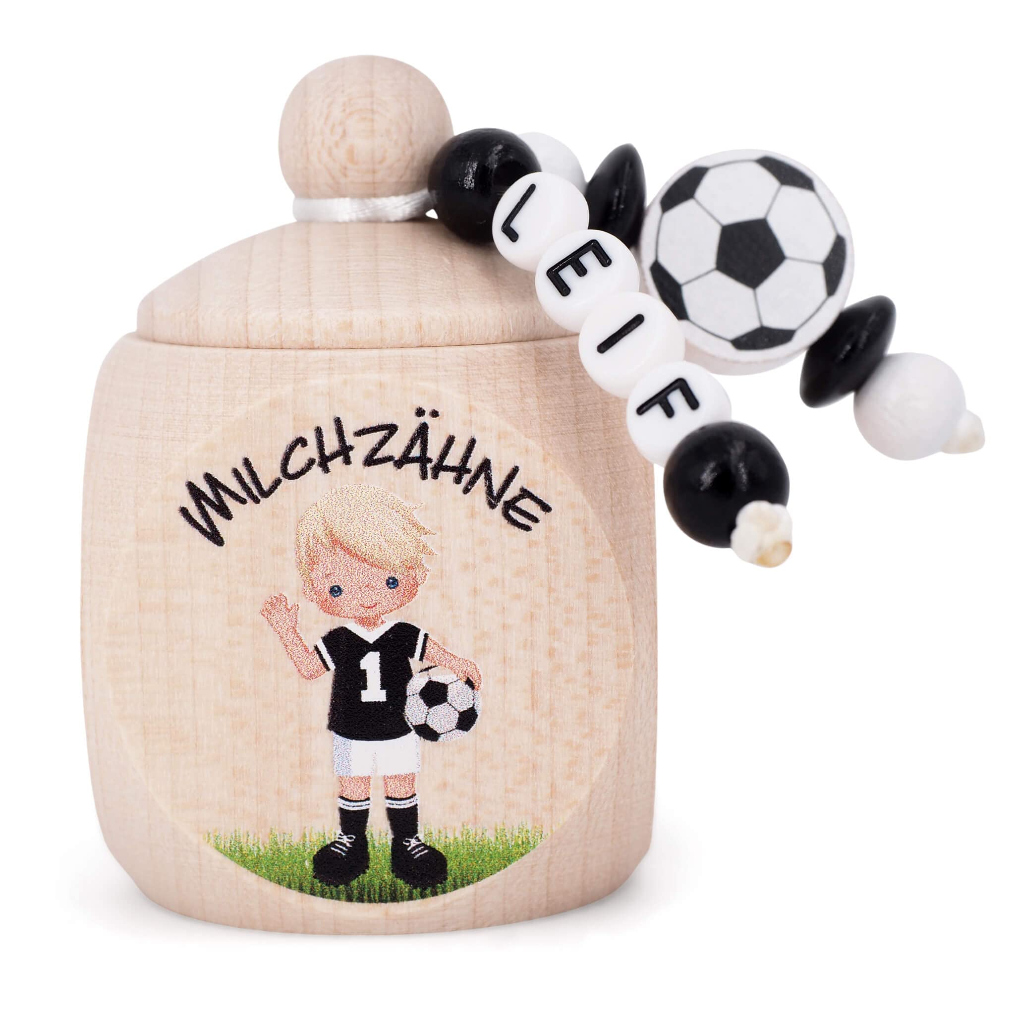 Milchzahndose FUSSBALLER Fußballer blond mit Namen Milchzähne Zahnfee Holz Zahndose Geschenk personalisiert Geburtstag Einschulung Kita