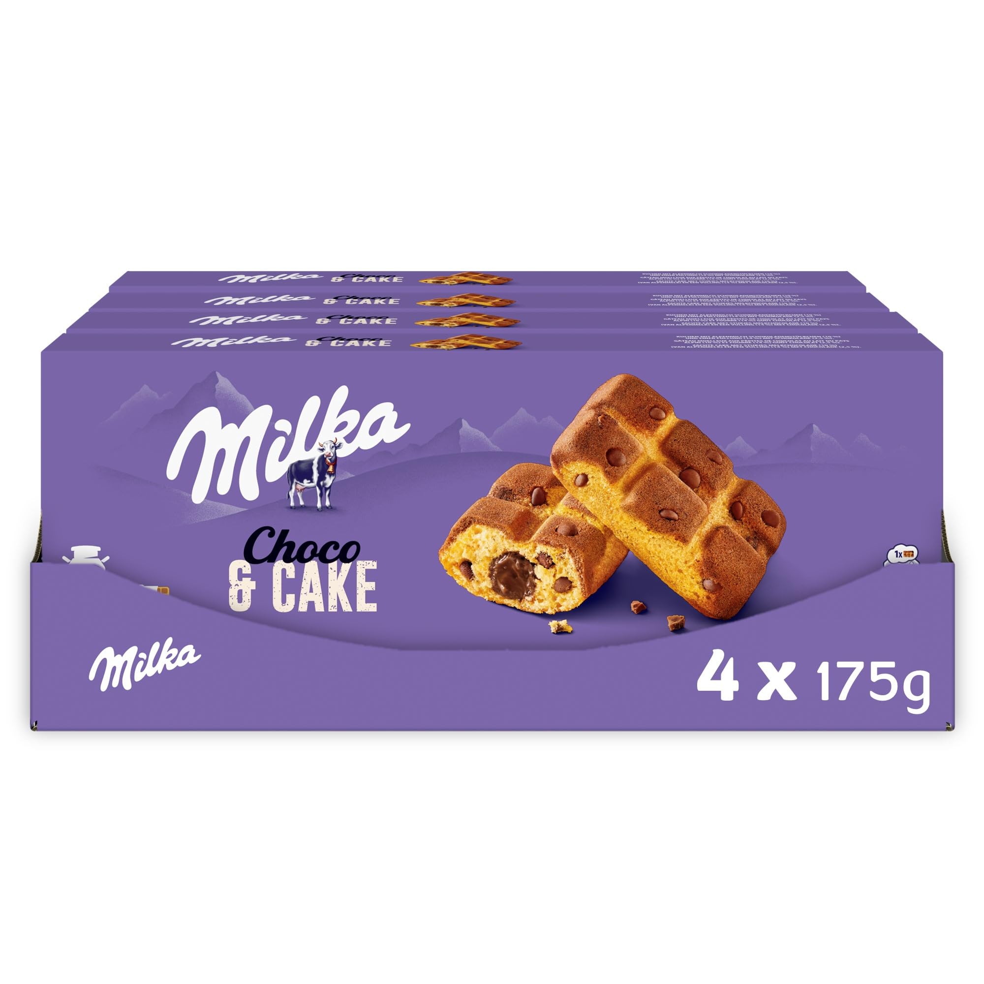 DELIVERY CONTENTS - This box contains 4 boxes of Milka Choco Cake filled with milk chocolate, i.e. a set of 4 x 175g. COCOA LIFE: COCOA MADE RIGHT - Cocoa Life is a program for more sustainable cocoa, for more responsible production and for the autonomy of men and women whose lives depend on cocoa cultivation. GOURMET BREAK - Ideal for children's snacks, small appetites at any time of the day or to share with friends during a coffee break. PRACTICAL FORMAT - Milka Choco Cake cakes accompany you throughout the day for a gourmet break with their pocket-sized formats, practical to take away thanks to their individual packaging. MILKA CHOCO CAKE - Soft cake with milk chocolate chips from the Alpine country and filled with a delicious melting heart of tender Milka milk chocolate.CONTENU DE LA LIVRAISON - Ce carton contient 4 boîtes de gâteaux Choco Cake fourrés au chocolat au lait Milka soit un lot de 4 x 175g. COCOA LIFE : COCOA MADE RIGHT - Cocoa Life est un programme pour un cacao plus durable, pour une production plus responsable et pour une autonomie des hommes et femmes dont la vie dépend de la culture du cacao. PAUSE GOURMANDE - Idéal pour le goûter des enfants, les petites faims à n'importe quel moment de la journée ou encore à partager entre amis lors d'une pause café. FORMAT PRATIQUE - Les gâteaux Choco Cake Milka vous accompagnent tout au long de la journée pour une pause gourmande avec leurs formats de poche pratiques à emporter grâce à leurs emballages individuels. MILKA CHOCO CAKE - Gâteau moelleux aux pépites de chocolat au lait du pays Alpin et fourré d'un délicieux cœur fondant au tendre chocolat au lait Milka.