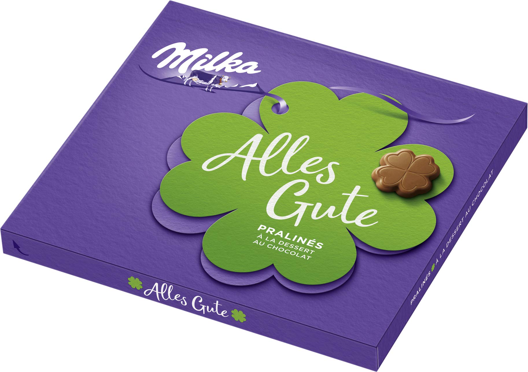 DESCRIPTION DU PRODUIT DESCRIPTION DU PRODUIT Les chocolats Milka en forme de trèfle sont remplis de cacaocrème le plus fin. INGRÉDIENTS Ingrédients : sucre, huile de palme, beurre de cacao, poudre de lactosérum (du lait), poudre de lait maigre, pâte de cacao, poudre de cacao faible en graisse (4 ), graisse de beurre de cacao, graisse de noix de cacao, émulsifiants (sojaLECITINE, E476), arômes (contient du lait). Peut contenir d'autres douilles.