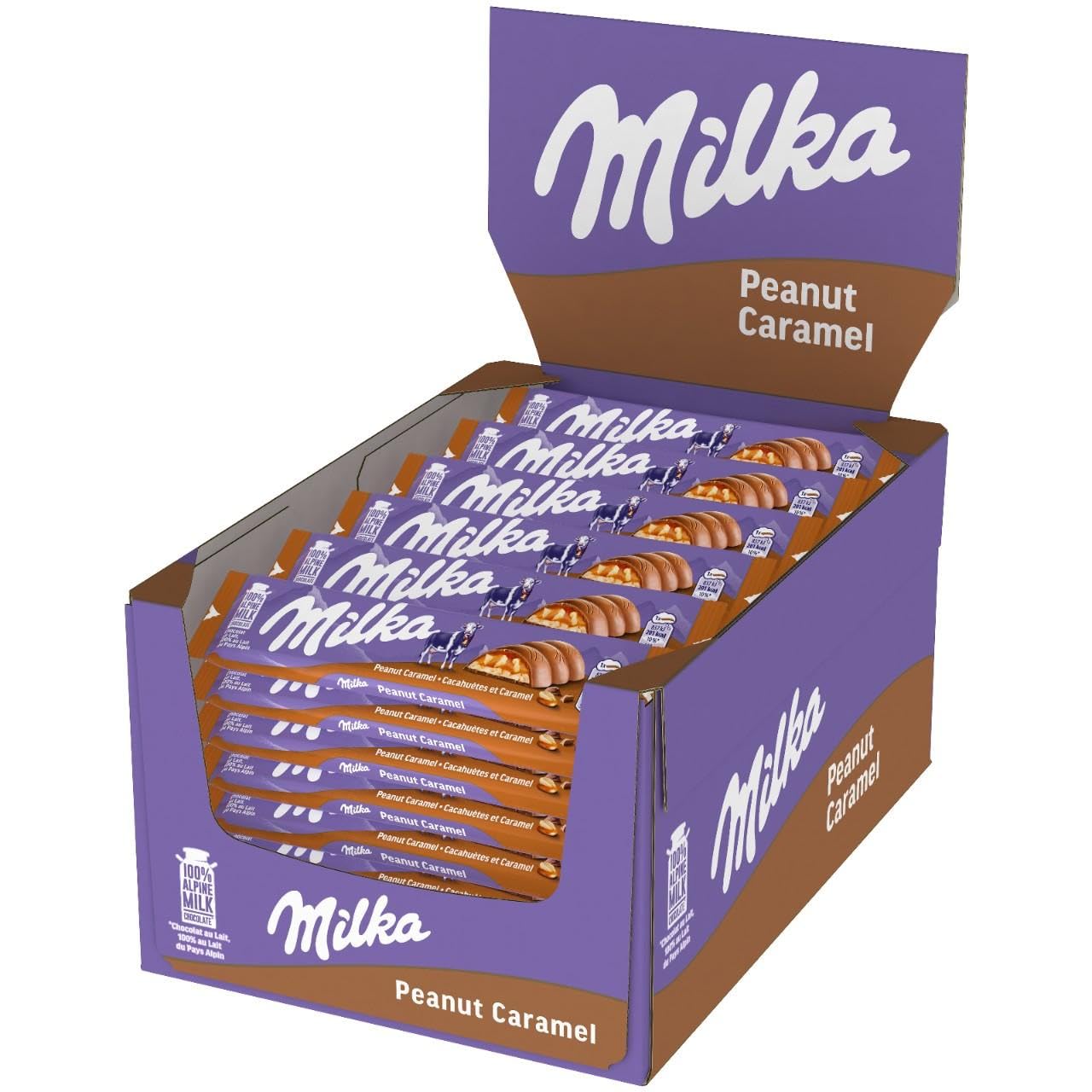 Milka Peanut Caramel is an ultra-indulgent bar that combines tender Alpine Milk chocolate with crunchy peanuts sprinkled with melting caramel. Perfect for those snacks, this Milka Peanut Caramel bar provides a delicious and generous mix at any time of day. Adults and children alike will melt in front of the creaminess of the chocolate. INGREDIENTS Sugar, PEANUTS, cocoa butter, palm fat, skimmed MILK powder, whey powder (from MILK), glucose syrup, cocoa mass, PEANUT paste (3 ), BUTTER OIL, sweetened condensed skimmed MILK, PEANUT pieces, humectant (glycerol), invert sugar syrup, caramelized sugar, emulsifiers (SOY lecithin, E 476, E 471), rice flour, HAZELNUT paste, salt, flavorings. MAY CONTAIN OTHER NUTS AND WHEAT. DIRECTIONS FOR USE Can be consumed immediately SAFETY WARNING Store away from heat and moisture. Delivery contents: Pack of 36 Milka Peanut Caramel bars, Net weight: 37 g bar. Family size of 36 bars, practical and easy to take anywhere, in your bag or to the office thanks to its individual packaging. Ideal for small hunger pangs at any time of the day, for your parties or to share with friends during a coffee break. 100 sustainable cocoa from the Cocoa Life program for a delicious and quality chocolate. Ultra-indulgent bar combining tender Milka milk chocolate with peanuts and melting caramel. Milka Peanut Caramel est une barre ultra gourmande qui associe le tendre chocolat au Lait du Pays Alpin avec des cacahuètes croquantes parsemées de caramel fondant. Parfaite pour les moments de petits creux, cette barre Milka Cacahuètes Caramel assure un mix gourmand et généreux à n'importe quel moment de la journée. Adultes comme enfants fondront devant l'onctuosité du chocolat. INGRÉDIENTS Sucre, ARACHIDES, beurre de cacao, graisse de palme, LAIT écrémé en poudre, lactosérum en poudre (de LAIT), sirop de glucose, pâte de cacao, pâte d'ARACHIDES (3 ), BEURRE concentré, LAIT écrémé concentré sucré, éclats d'ARACHIDES, humectant (glycérol), sirop de sucre inverti, sucre caramélisé, émulsifiants (lécithine de SOJA, E 476, E 471), farine de riz, pâte de NOISETTES, sel, arômes. PEUT CONTENIR AUTRES FRUITS À COQUE ET BLÉ. MODE D'EMPLOI Peut être consommer immédiatement AVERTISSEMENT DE SÛRETÉ A conserver à l'abri de la chaleur et de l'humidité. Contenu de la livraison : Lot de 36 barres Milka Peanut Caramel, Poids net : 37 g barre. Format familial de 36 barres pratiques et faciles à emporter partout, dans votre sac ou au bureau grâce à son emballage individuel. Idéal pour les petites faims à n'importe quel moment de la journée, pour vos fêtes ou à partager entre amis lors d'une pause café. Cacao 100 durable issu du programme Cocoa Life pour un chocolat gourmand et de qualité. Barre ultra gourmande associant le tendre chocolat au lait Milka avec des cacahuètes et du caramel fondant.