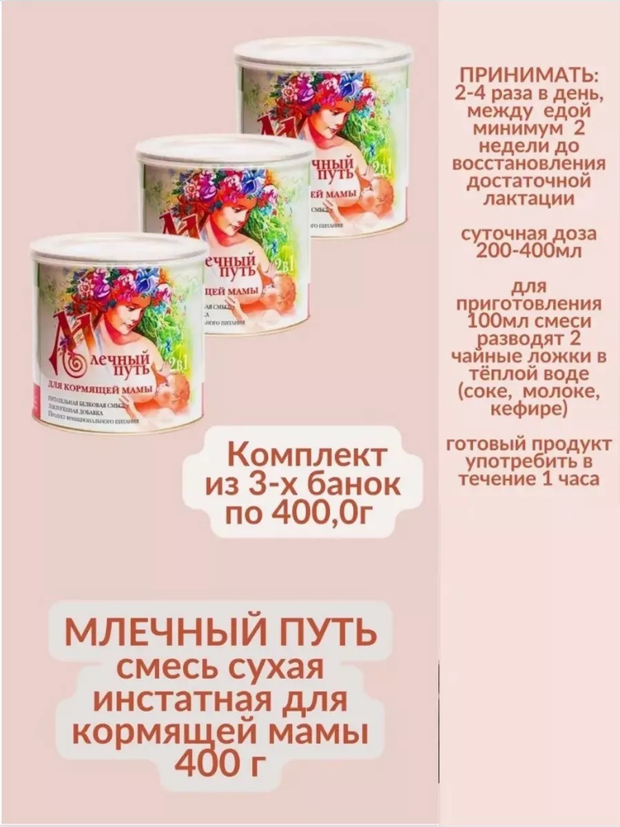 Специализированное питание для усиления лактации Млечный Путь рекомендовано всем кормящим женщинам для увеличения количества и качества грудного молока и в качестве дополнительного источника белка, витаминов, микро и макронутриентов, с целью профилактики у них недостатка указанных пищевых веществ. За счет наличия в продукте натуральной лактогенной добавки (экстракт травы Галега), Млечный путь увеличивает количество грудного молока у кормящих женщин в 1,5-2 раза в сравнении с женщинами, не получавшими продукт. Особенно показан родильницам после кесарева сечения, с первичной гипогалактией, а также кормящим матерям в период снижения объема выделяемого молока во время лактационных кризов. Способ примененения-суточная доза 200-400 мл. Для приготовления 100 мл смеси 2 чайные ложки развести в 100 мл теплой кипяченой воды(сока, молока, кефира). Готовый продукт употребить в течение часа. Принимать 2-4 раза в день в течение не менее 2-х недель до восстановления достаточной лактации.