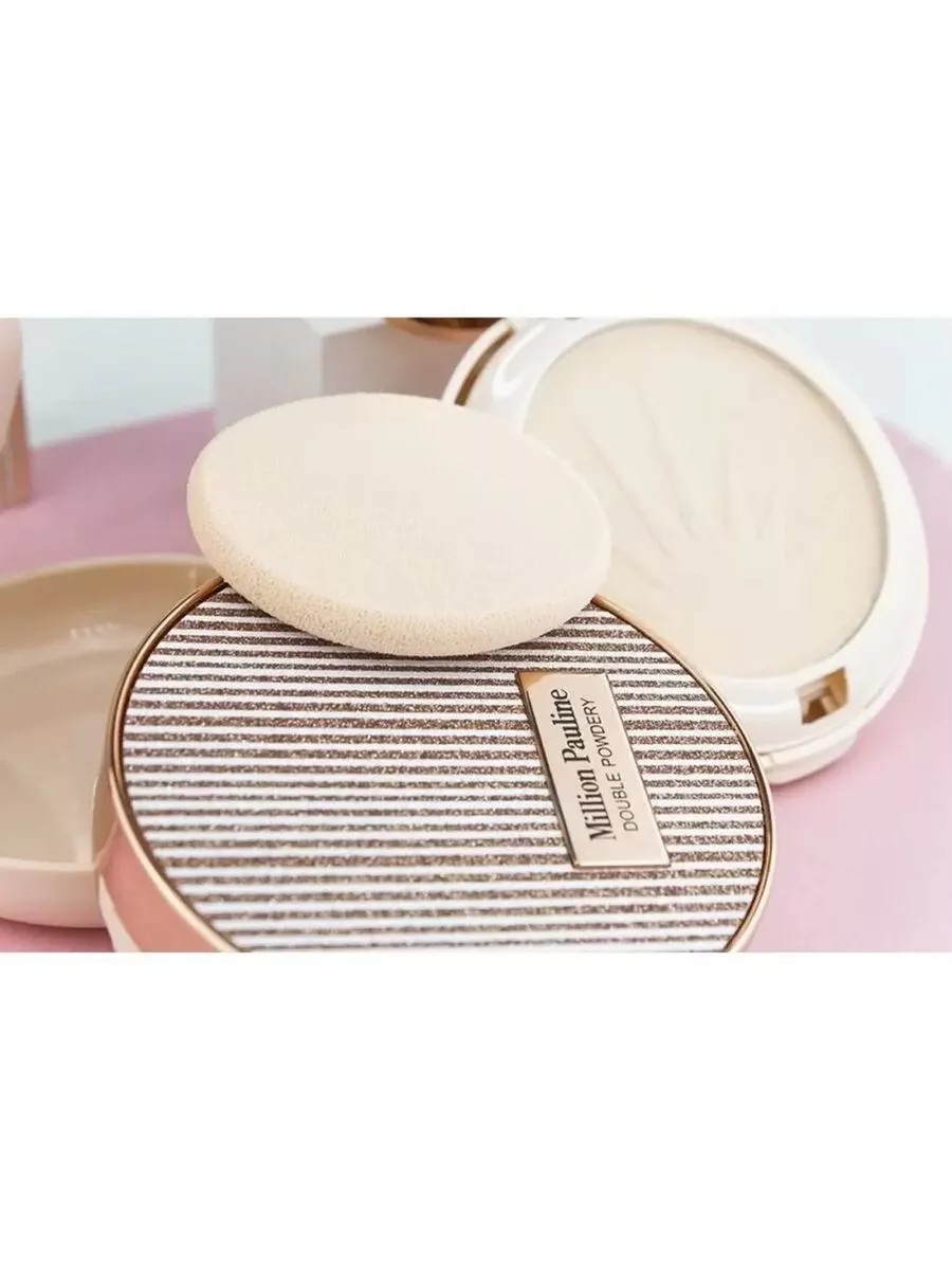 Million Pauline Double Powdery Cake is a modern compact powder that sets makeup and transforms skin, diffusing light for a radiant finish. It imparts a soft glow, reminiscent of a candle flame. It enhances the skin's natural beauty and transforms its appearance, creating a delicate, radiant finish. The compact contains two shades, a mirror, and a sponge. It evens out skin tone with one light touch, conceals imperfections, and creates a natural complexion. This product contains only natural ingredients that are beneficial for the overall condition of the skin. It also protects the skin from the sun and moisturizes.