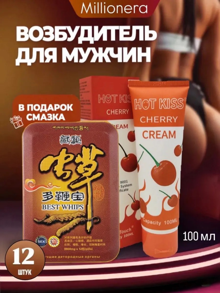 | Package contents | stimulant for men - 12 tablets; edible intimate lubricant for sex 18+ with cherry scent; instructions - 1 pc; anonymous courier package; iron box - 1 pc. |