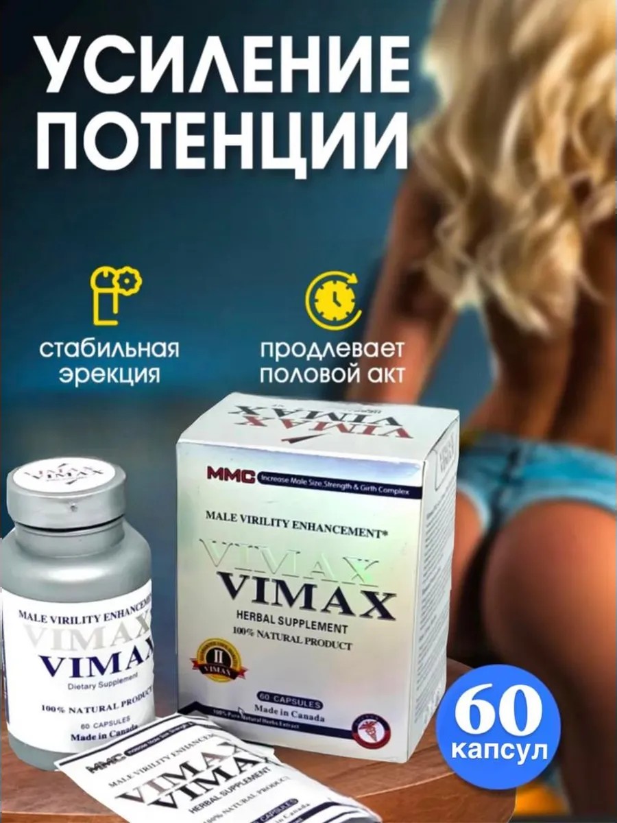 | Комплектация | Возбуждающий препарат; Мужская потенция для секса интима; Vimax мужской возбудитель 60 капсул |