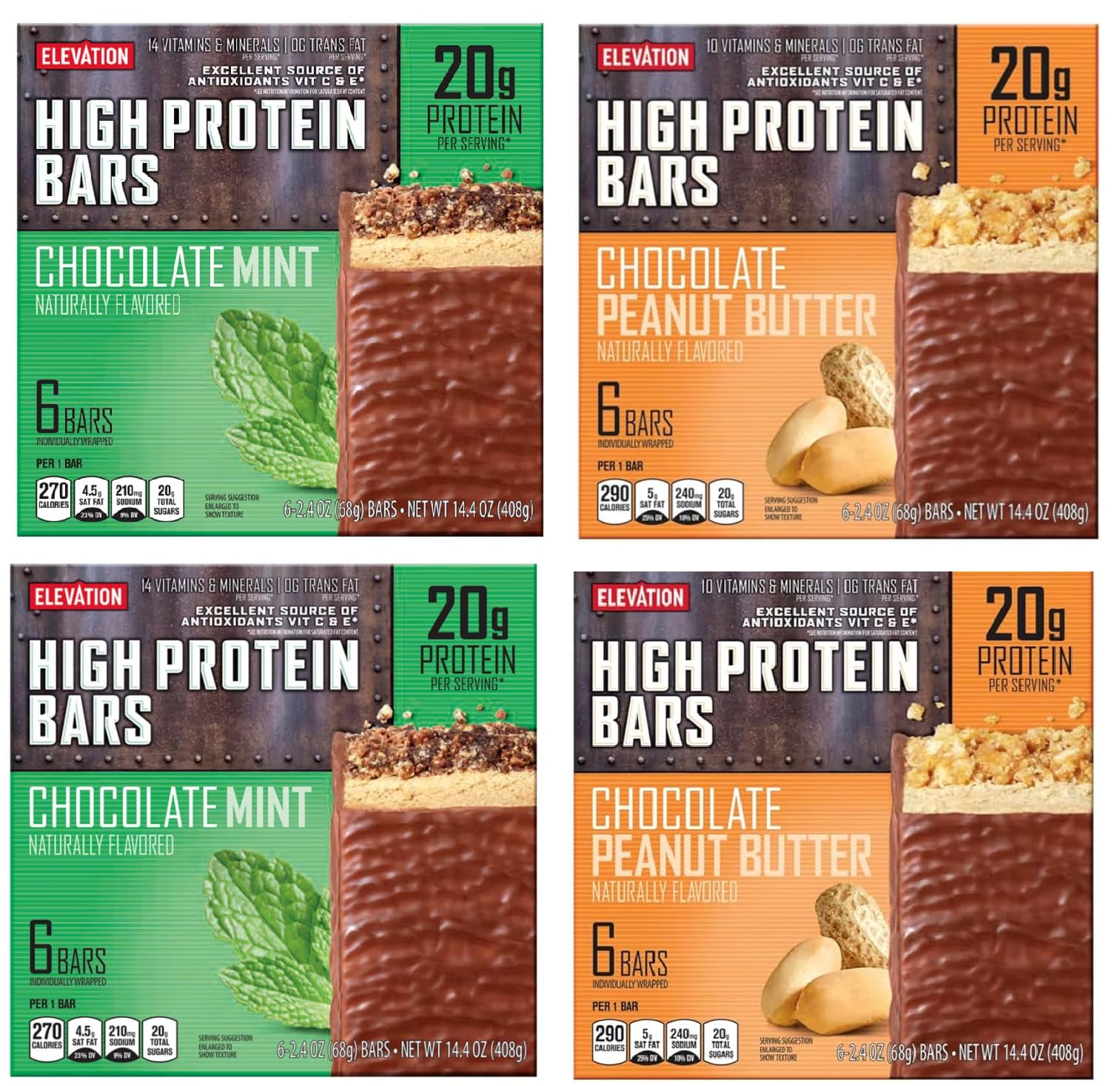 Millville Elevation Mint Chocolate and Chocolate Peanut Butter High Protein Bars 14.4oz 408g (Pack of Four)