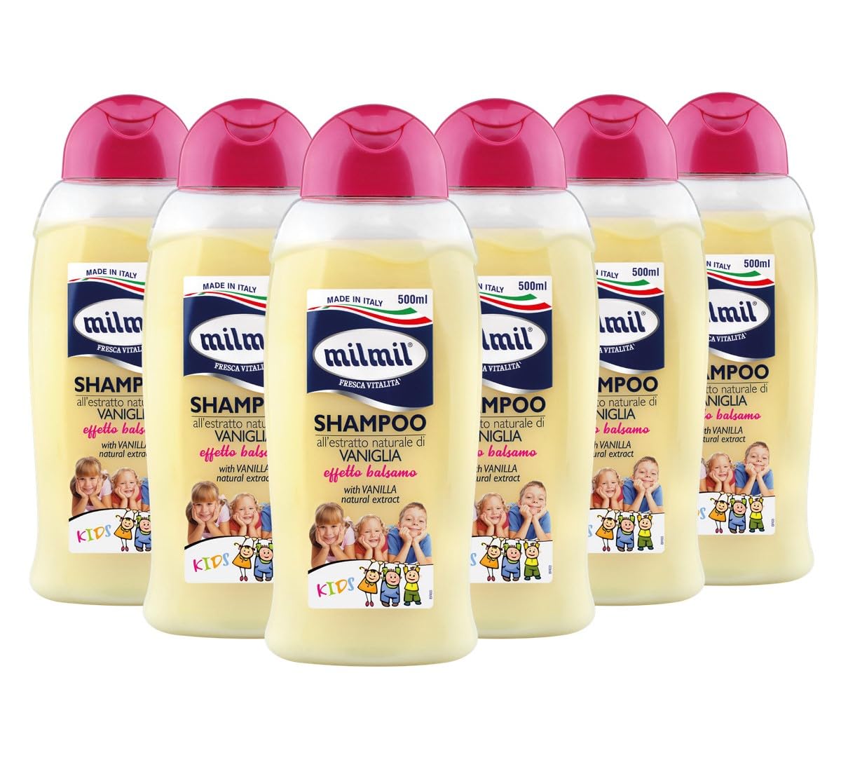 BALSAMO EFFECT Its new formula is enriched with vanilla extract which, thanks to its softening properties, detangles knots and protects hair, leaving it soft and pleasantly scented. Its supple lather allows for frequent washing and respects the hair fiber. The balm effect of the formula leaves hair soft and easy to comb. INGREDIENTS AQUA, SODIUM LAURETH SULFATE, SODIUM CHLORIDE, PEG-200 HYDROGENATED GLYCERYL PALMATE, DISODIUM COCOAMPHODIACETATE, POLYQUATERNIUM-7, PEG-7 GLYCERYL COCOATE, SODIUM LAUROYL GLUTAMUM, VANILLA PLANILE FLIA FRUIT EXTRACT, PROPYLENE GLYCOL, TRIETHYLENE GLYCOL, COCOCO-GLUCOSIDE, STYRENE ACRYLATES COPOLYMER, CITRIC ACID, MAGNESIUM NITRATE, MAGNESIUM CHLORIDE, LINALOOL, COUMARIN, DMDM HYDANTOIN, BENZYL ALCOHOL, METHYLCHLOROISOOISOTHIYLCHLOROISOY OLINONE, METHYLISOTHIAZOLINONE, CI 19140, CI 14720. FASHION DIRECTIONS FOR USE Gently massage the shampoo into wet hair and rinse thoroughly. Wash, rinse, and repeat if necessary. See moreNo more tangles: Say goodbye to knots with this conditioning shampoo for children that makes hair easy to comb by eliminating knots. Easy to use: Gently massage the sulfate-free children's shampoo into wet hair and rinse thoroughly. Care: Treat young hair with this gentle children's shampoo that's free of sulfates, allergens, and dyes. Fresh washes: Its soft lather allows for frequent washing and respects the hair fiber. The formula's balm-like effect leaves hair soft and easy to comb. Ballerina effect: Its new formula is enriched with vanilla extract, which, thanks to its softening properties, detangles knots and protects hair, leaving it soft and pleasantly scented.MILMIL Shampoo Kids - À l'extrait naturel de Vanille - Effet balsamo - 500 ml - Lot de 6DESCRIPTION DU PRODUIT DESCRIPTION DU PRODUIT EFFET BALSAMO Sa nouvelle formule est enrichie de l'extrait de vanille qui, grâce à ses qualités adoucissantes, distrie les nœuds et protège les cheveux en les laissant doux et agréablement parfumés. Sa mousse souple permet un lavage fréquent et respecte la fibre capillaire. L'effet Baume de la formule laisse les cheveux doux et facilement peignables. INGRÉDIENTS AQUA, SODIUM LAURETH SULFATE, SODIUM CHLORIDE, PEG-200 HYDROGENATED GLYCERYL PALMATE, DISODIUM COCOAMPHODIACETATE, POLYQUATERNIUM-7, PEG-7 GLYCERYL COCOATE, SODIUM LAUROYL GLUTAMUM, VANILLE PLANILE FLIA FRUIT EXTRACT, PROPYLENE GLYCOL, TRIETHYLENE GLYCOL, COCOCO-GLUCOSIDE, STYRENE ACRYLATES COPOLYMER, CITRIC ACID, MAGNESIUM NITRATE, MAGNESIUM CHLORIDE, LINALOOL, COUMARIN, DMDM HYDANTOIN, BENZYL ALCOHOL, METHYLCHLOROISOOISOTHIYLCHLOROISOY OLINONE, METHYLISOTHIAZOLINONE, CI 19140, CI 14720. MODE D'EMPLOI Masser délicatement le shampooing sur cheveux humides et rincer abondamment. Laver, rincer et répéter si nécessaire. Voir plusPlus de nuisances : Dites adieu aux nœuds avec le shampooing conditionnant pour enfants qui rend les cheveux faciles à peigner en éliminant les nœuds. Facile à utiliser : Masser délicatement le shampooing sans sulfate pour enfants sur les cheveux mouillés et rincer abondamment. Entretien : Traitez les cheveux jeunes avec le shampooing délicat pour enfants sans sulfates, allergènes et colorants. Lavages frais : sa mousse souple permet des lavages fréquents et respecte la fibre capillaire. L'effet Baume de la formule laisse les cheveux souples et facilement peignables. Effet danseuse : sa nouvelle formule est enrichie avec l'extrait de Vanille qui, grâce à ses qualités adoucissantes, distrait les nœuds et protège les cheveux en les laissant doux et agréablement parfumés.