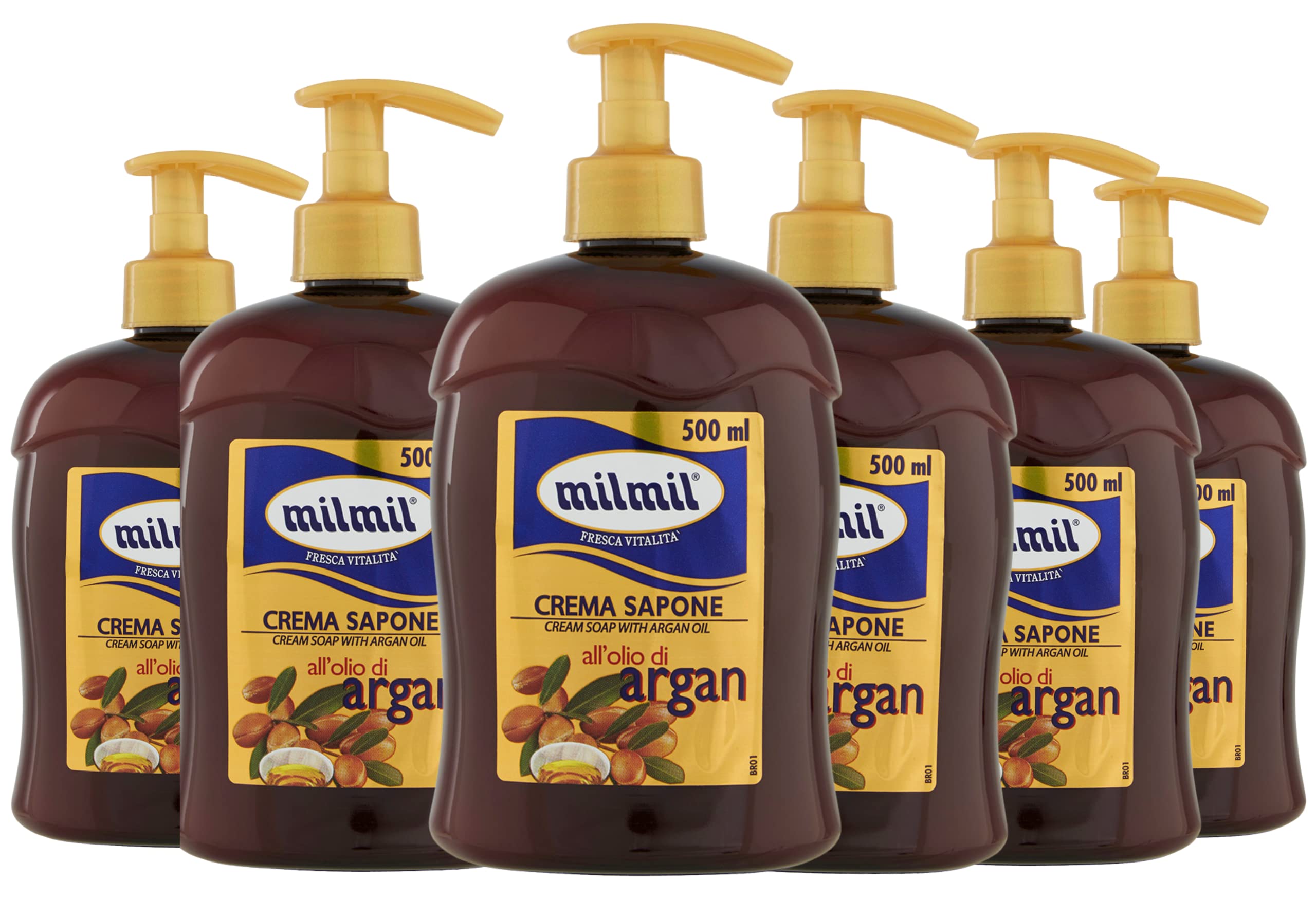 This creamy, delicately scented product gently cleanses the skin of the hands, face, and body, helping it maintain its natural balance. Skin will feel soft and smooth. The formula with natural argan oil makes it suitable for the whole family. Dermatologically tested. INGREDIENTS Aqua, Sodium Laureth Sulfate, Sodium Chloride, Cocamide DEA, Cococo-Glucoside, Glycerin, Argan Oil, Glycereth-8 Extract, Parfum, Glyceryl Oleate, Glyceryl Stearate, Glycol Distearate, Styrene Acrylates Copolymer, Citric Acid, Propane. YLENE GLYCOL, TRIETHYLENE GLYCOL, MAGNESIUM NITRATE, MAGNESIUM CHLORIDE DMDM, HYDANTOIN, BENZYL ALCOHOL, METHYLCHLOROISOTHIAZOLINONE, METHYLISOTHIAZOLINONE. DIRECTIONS FOR USE DTP - 12 months See moreMISSION: MIL MIL 76 SpA is a company with over 40 years of experience. Over time, it has continued to grow and expand, and today it stands as a reliable and recognized name. Dermatologically tested: the selected components of this liquid body wash are gentle on the skin, thanks to its physiological pH. Gentleness: designed and formulated for daily hygiene and cleansing, it leaves skin feeling soft and pleasantly smooth. Format: creamy soap with a dispenser specifically designed for cleansing hands, face, and body. Soap: liquid soap with a delicate argan oil fragrance, ideal for use as a soap alternative.Milmil Savon liquide crème savon, parfum huile d'argan, testé dermatologiquement - 6 x 500 mlDESCRIPTION DU PRODUIT DESCRIPTION DU PRODUIT Le produit crémeux et au parfum délicat nettoie en douceur la peau des mains, du visage et du corps, en l'aidant à conserver son équilibre naturel. La peau sera douce avec une agréable sensation de douceur. La formulation à l'huile d'argan naturelle le rend indiqué sur la peau de toute la famille. Testé sous contrôle dermatologique. INGRÉDIENTS Aqua, Sodium LAURETH SULFATE, SODIUM CHLORIDE, COCAMIDE DEA, COCOCO-GLUCOSIDE, GLYCERIN, ARGAN OIL GLYCERETH-8 EXTERS, PARFUM, GLYCERYL OLEATE, GLYCERYL STEARATE, GLYCOL DISTEARATE, STYRENE ACRYLATES COPOLYMER, CIT, CITY RIC ACID, PROPRE. YLENE GLYCOL, TRIETHYLENE GLYCOL, MAGNESIUM NITRATE, CHLORIDE DE MAGNESIUM DMDM, HYDANTOIN, BENZYL ALCOHOL, METHYLCHLOROISOTHIAZOLINONE, METHYLISOTHIAZOLINONE. MODE D'EMPLOI PAO - 12 mois Voir plusMISSION : MIL MIL 76 SpA est une entreprise avec plus de 40 ans d'expérience. Au fil du temps, il a continué à se développer et à s'étendre, et se propose aujourd'hui comme une réalité fiable et reconnue. Testé dermatologiquement : les composants sélectionnés de ce savon liquide pour le corps sont doux pour la peau, grâce au pH physiologique. Douceur : conçu et étudié pour l'hygiène et le nettoyage quotidien, il laisse la peau douce et agréablement douce. Format : savon crémeux avec distributeur spécifique pour nettoyer les mains, le visage et le corps. Savon : savon liquide au parfum délicat huile d'argan, idéal à utiliser comme alternative au savon.