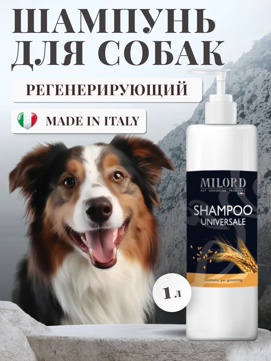 Milord Shampoo Universale "Restorative Wheat" shampoo, made in Italy, is suitable for all coat types in dogs and cats.