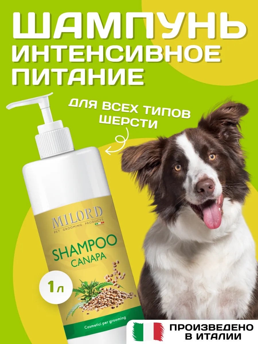 Milord Shampoo Canapa "Nourishing Canapa" made in Italy effectively restores and nourishes dry and damaged coats for dogs and cats.