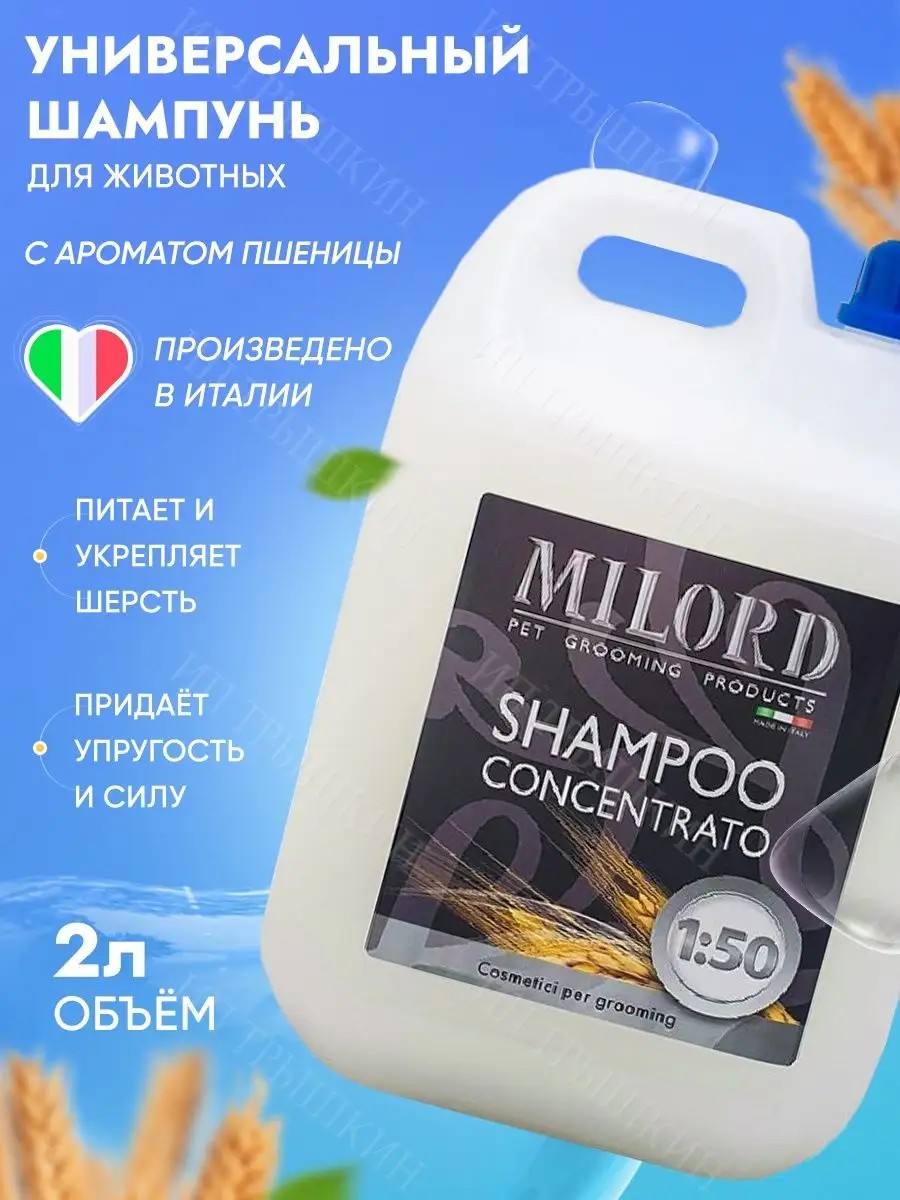 Экономичный профессиональный шампунь для животных концентрат 1:50 с экстрактом и протеинами пшеницы подходит для всех типов шерсти собак и кошек. Шампунь создан на основе гидролизата протеинов пшеницы, благодаря чему интенсивно питает, укрепляет и увлажняет шерсть, придаёт ей упругость и силу. Так же экстракт пшеницы восстанавливает повреждённую шерсть, делая ее гладкой, эластичной и блестящей. Входящий в состав пантенол с его увлажняющим действием, восстанавливает естественный баланс кожи и шерсти, защищает от неблагоприятных факторов внешней среды. Благодаря сбалансированной рН формуле подходит для частого применения. Способ применения: Необходимое количество шампуня развести в теплой воде в соотношении 1:50. Нанести на влажную шерсть животного, помассировать, вспенить. Смыть теплой водой. После шампуня рекомендуется использовать бальзам. Состав шампуня: Aqua, sodium laureth sulfate, cocamidopropyl betaine, sodium chloride, disodium laureth sulfosuccinate, laureth-2, peg-7 glyceryl cocoate, parfum, polyquaternium-7, panthenol, edta, magnesium nitrate, citric acid, hexyl cinnamal, linalool, ci 16255, limonene, ci 19140, methylchloroisothiazolinone, magnesium chloride, methylisothiazolinone.