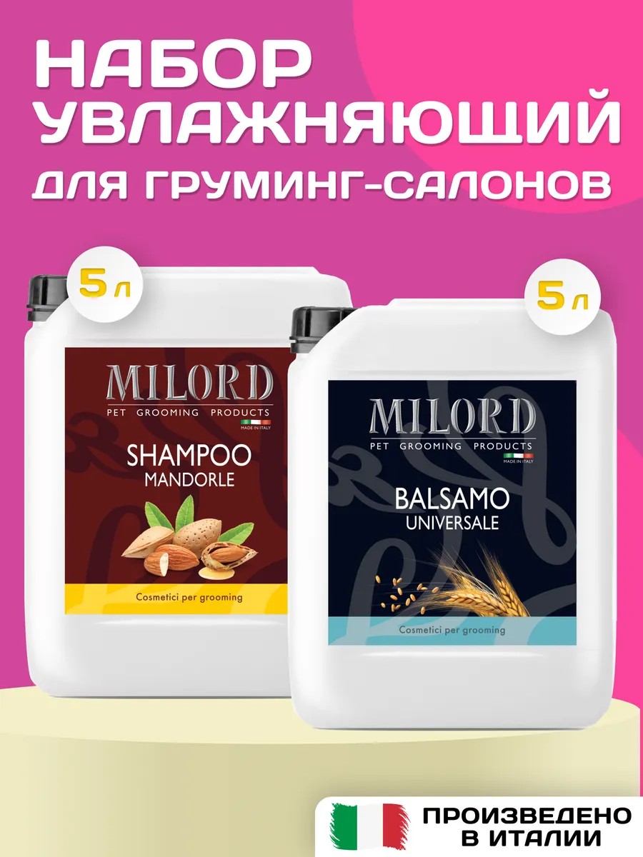 MILORD Набор шампунь для собак и бальзам увлажняющий Миндаль Милорд