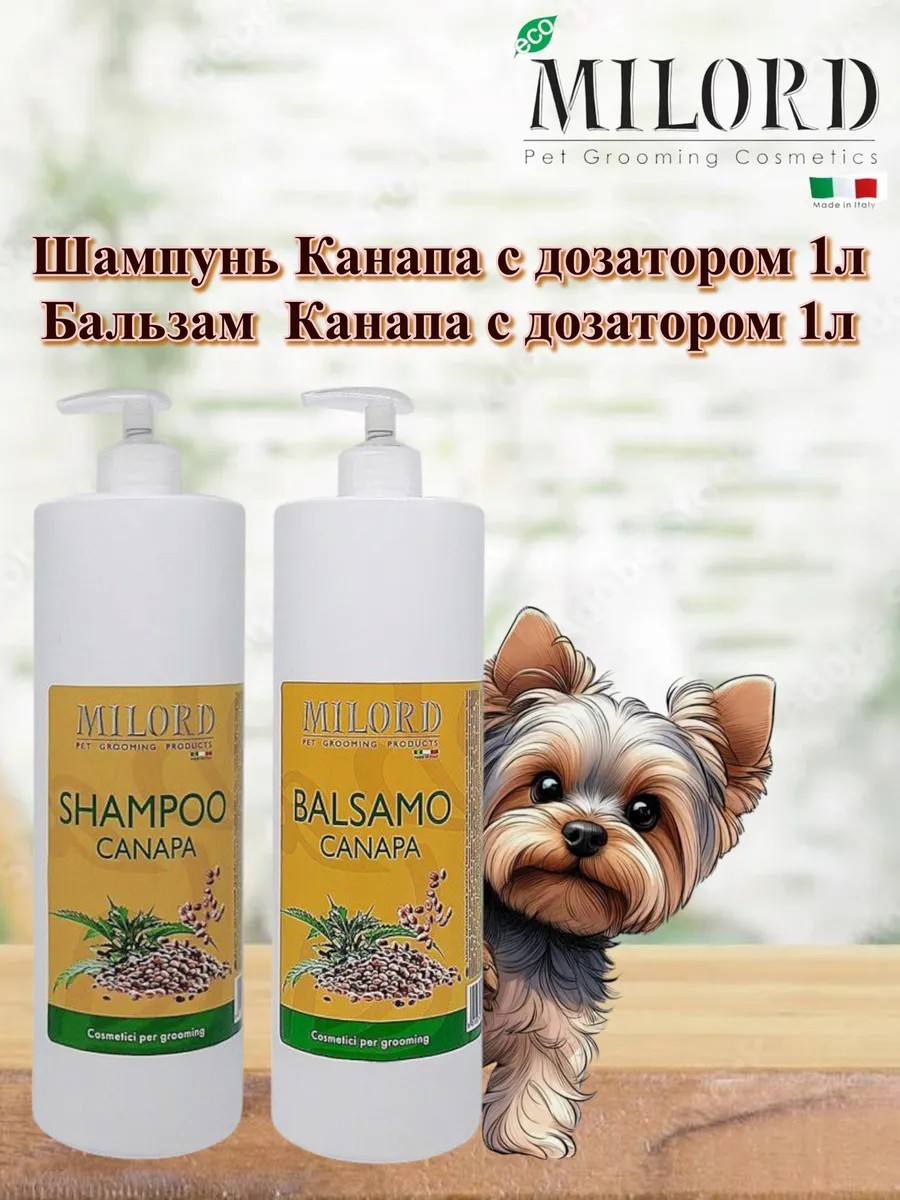 MILORD Шампунь и бальзам "CANAPA" для мытья животных 1л+1л