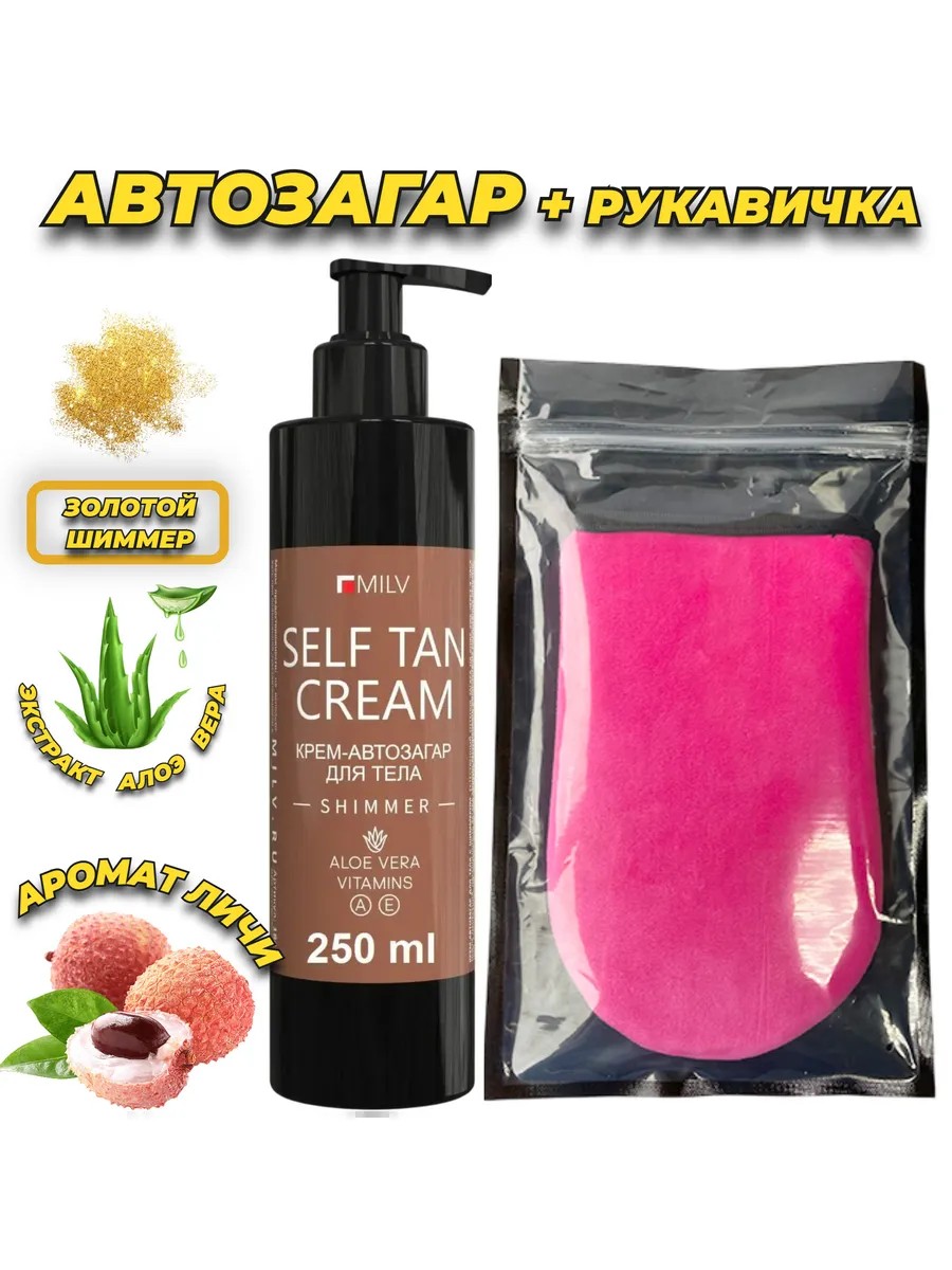 Набор автозагар и перчатка для нанесения автозагара - домашний солярий. Milv автозагар для тела и лица с шиммером придаст вашему образу свежесть и яркость и сделает ваш образ более выразительным. Безусловно применеие его как автозагар для ног или как говорят жидкие колготки для ног крем позволят подчеркнуть ваши достоинства, придавая уверенности и элегантности. Благодаря своему уникальному составу, загар для тела и лица не только окрашивает кожу, но и увлажняет ее, делая кожу бархатистой на ощупь.