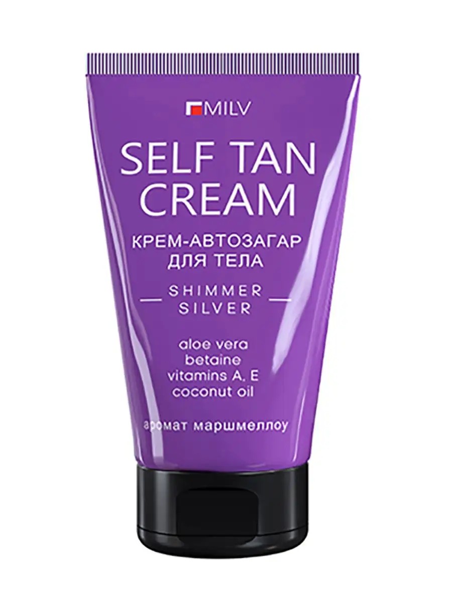 Профессиональный крем автозагар с шиммером Маршмеллоу Milv с ароматом маршмеллоу, мандарина и фиалки - это идеальное экспресс средство для получения ровного, естественного загара без солярия и прямых лучей солнца для светлой кожи уже через 4 часа после нанесения. Не оставляет разводов и оранжевых полос, у него деликатная и нежирная структура, которая быстро высыхает на теле и не прилипает к одежде. Автобронзант подойдет и для сухой кожи — он ее хорошо увлажнит за счет алое и витамина Е в составе. Насыщенность загара можно регулировать количеством ежедневных применений. Максимальный эффект загара достигается через 4-5 дней ежедневного использования.